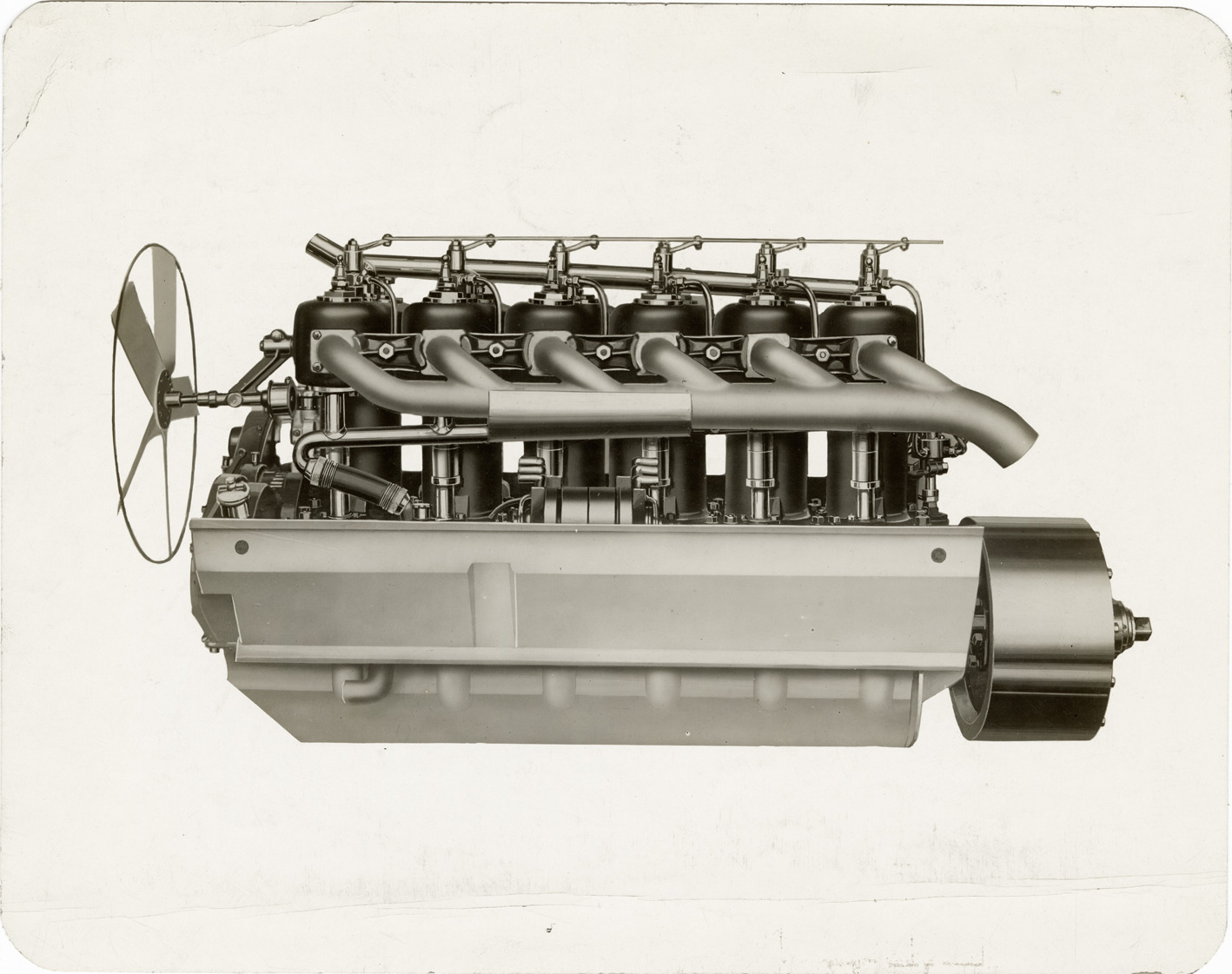Artist's depiction of a 1912 Model 77 Austin car engine. Handwritten on back: "Austin, motor. Model 77, 1912. Grand Rapids."