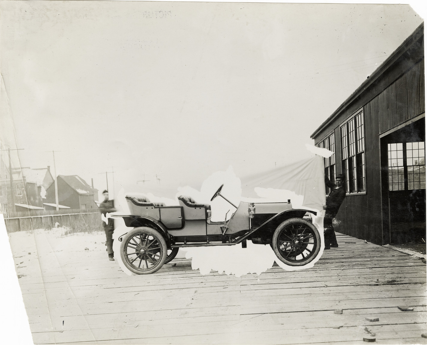 Favorite this☆ Everitt automobile Description: View of two men holding a cloth or sheet behind an Everitt car. Handwritten on back: "Everitt, ca. 1910." Details Resource ID: na043959 Subject: Automobiles Metzger Motor Car Company Photographic prints Date Issued: Unknown year Format: 1 photographic print ; 7.75 x 9.5 in. Member of: National Automotive History Collection Lazarnick Collection Filing Location: General photograph files, Everitt Rights: Physical rights are retained by DPL. Copyright is retained in accordance with U.S. copyright laws.