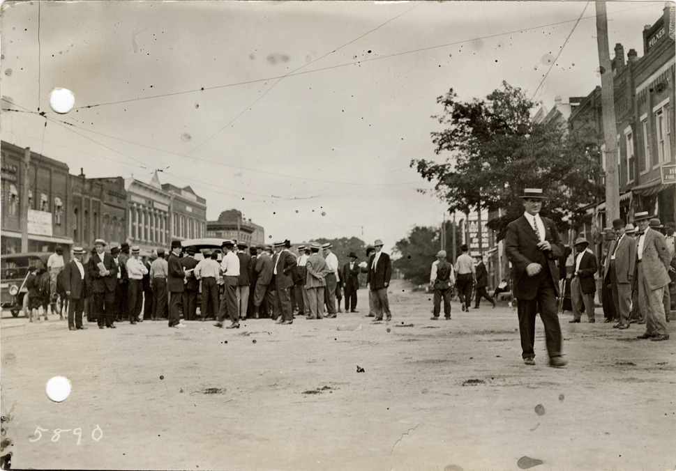 View of crowd surrounding Flanders electric car at Florence, Alabama during the pathfinding expedition for the 1912 Glidden Tour. The pathfinding tour covered a route from Detroit, Michigan to New Orleans, Louisiana, but the 1912 Glidden Tour was canceled. Handwritten on back: "Pathfinder in Florence, Alabama, 1912."
