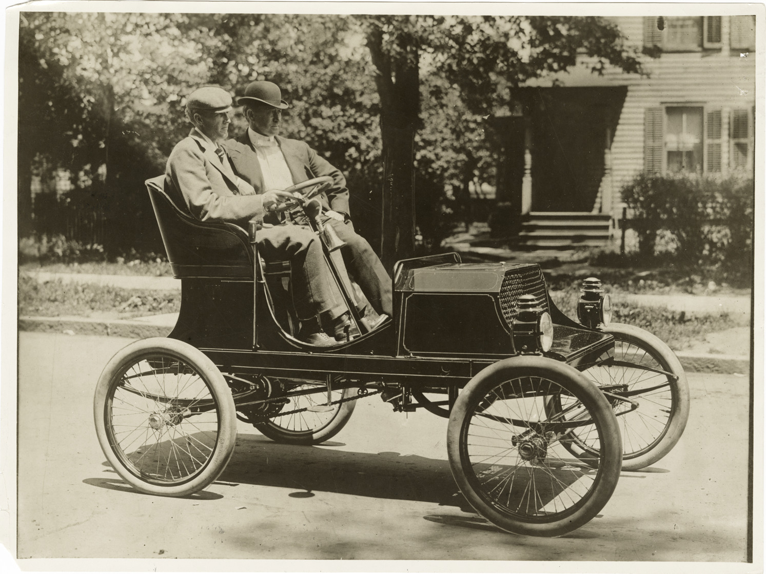 Favorite this☆ Motorists posing in 1901 Franklin automobile Description: View of motorists posing in a 1901 Franklin car. Handwritten on back: "Franklin, 1901. First automobile built in 1901." Details Resource ID: na044242 Subject: Franklin automobile Photographic prints Date Issued: Unknown year Format: 1 photographic print ; 7.5 x 10 in. Member of: National Automotive History Collection Filing Location: Franklin, 1901 Negative Number: 14,864 F-2 Rights: Physical rights are retained by DPL. Copyright is retained in accordance with U.S. copyright laws.