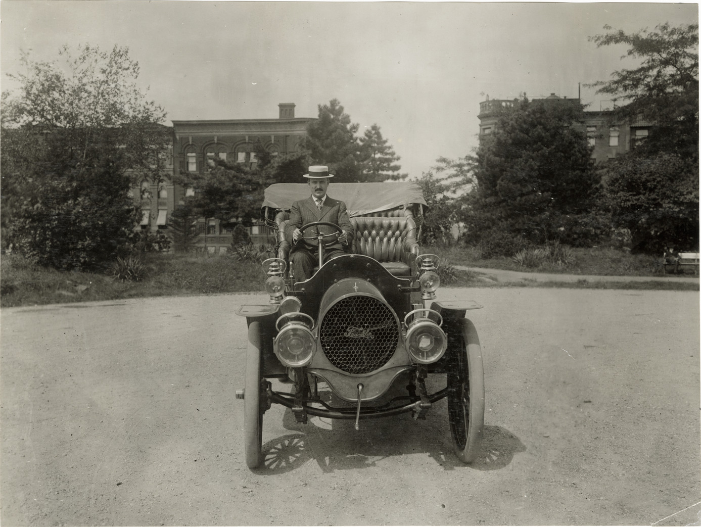Favorite this☆ Motorist posing in Franklin Six automobile Description: Front view of a motorist posing in a Franklin Six car. Handwritten on back: "Franklin Six, ca. 1907." Details Resource ID: na044290 Subject: Franklin automobile Photographic prints Date Issued: Unknown year Format: 1 photographic print ; 7 x 9.25 in. Member of: National Automotive History Collection Lazarnick Collection Filing Location: General photograph files, Franklin, 1907 Rights: Physical rights are retained by DPL. Copyright is retained in accordance with U.S. copyright laws.
