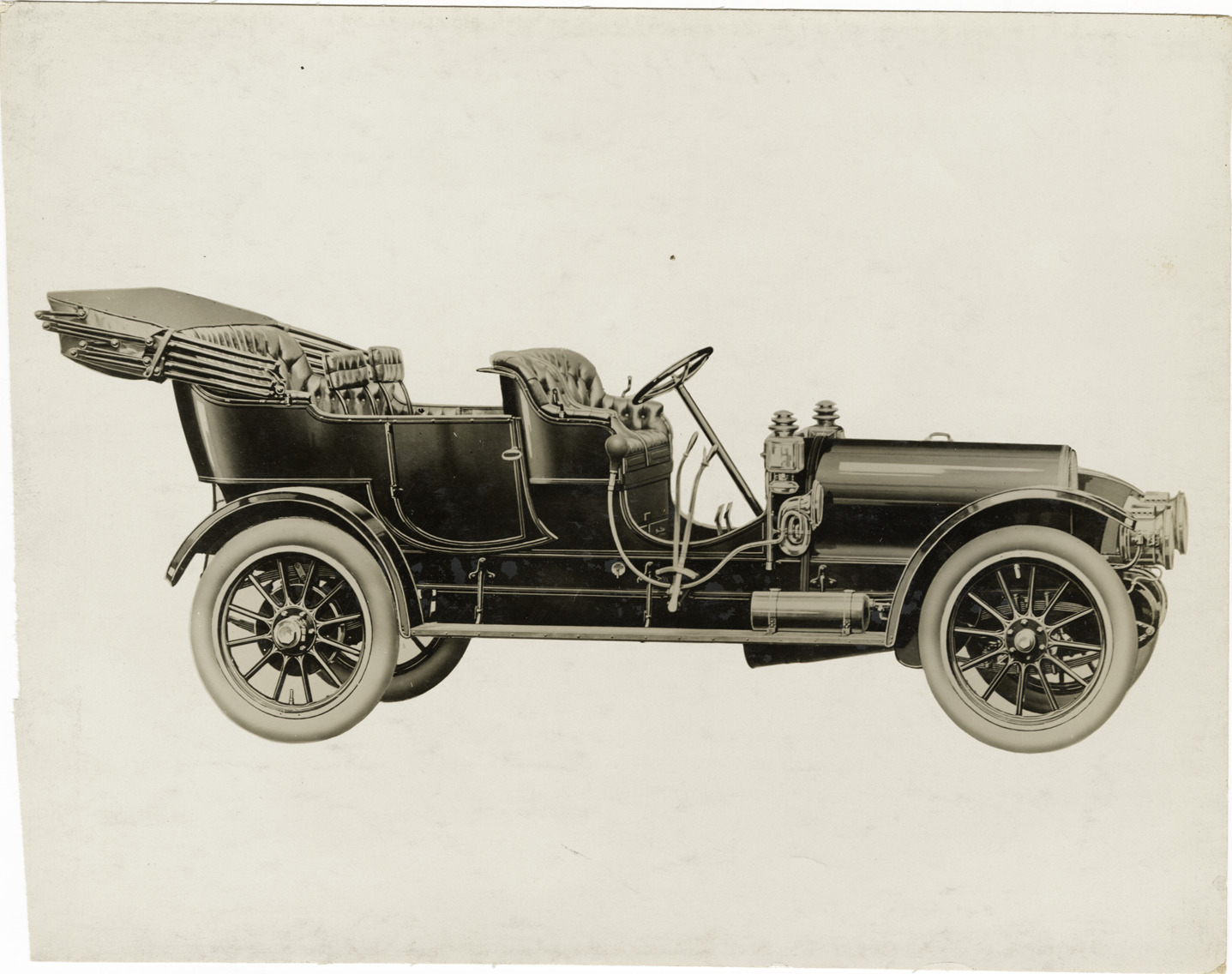 Favorite this☆ 1910 Franklin Model H touring automobile Description: Artist's depiction of a 1910 Franklin Model H touring car. Stamped on back: "From H.H. Franklin Mfg. Co., Syracuse, N.Y." Handwritten on back: "Franklin 1910 Model H touring car, top back." Details Resource ID: na044324 Subject: Franklin automobile Photographic prints Date Issued: Unknown year Format: 1 photographic print mounted on fabric ; 7.5 x 9.5 in. Member of: National Automotive History Collection Filing Location: Franklin, 1910 Rights: Physical rights are retained by DPL. Copyright is retained in accordance with U.S. copyright laws.