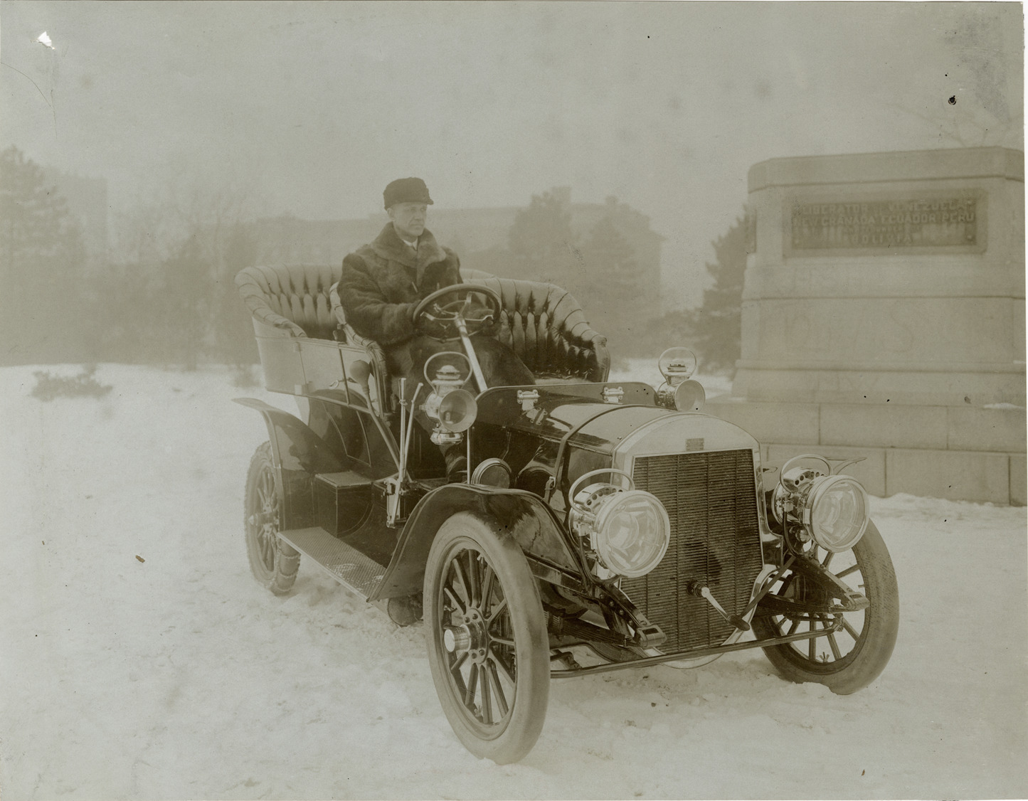 Favorite this☆ Motorist posing in Frayer-Miller automobile Description: View of a driver posing in a Frayer-Miller car during winter. Stamped on back: "Photo by F. Ed. Spooner, 1536 B'way, telephone 6536-38th St., New York, N.Y." Handwritten on back: "Frayer-Miller, ca. 1906." Details Resource ID: na044382 Creator: Spooner, F. Ed. Subject: Automobiles Oscar Lear Automobile Company Fur garments Photographers--New York (State)--New York Photographic prints Date Issued: Unknown year Format: 1 photographic print ; 7.5 x 9.75 in. Member of: National Automotive History Collection Lazarnick Collection Filing Location: General photograph files, Frayer-Miller Rights: Physical rights are retained by DPL. Copyright is retained in accordance with U.S. copyright laws.