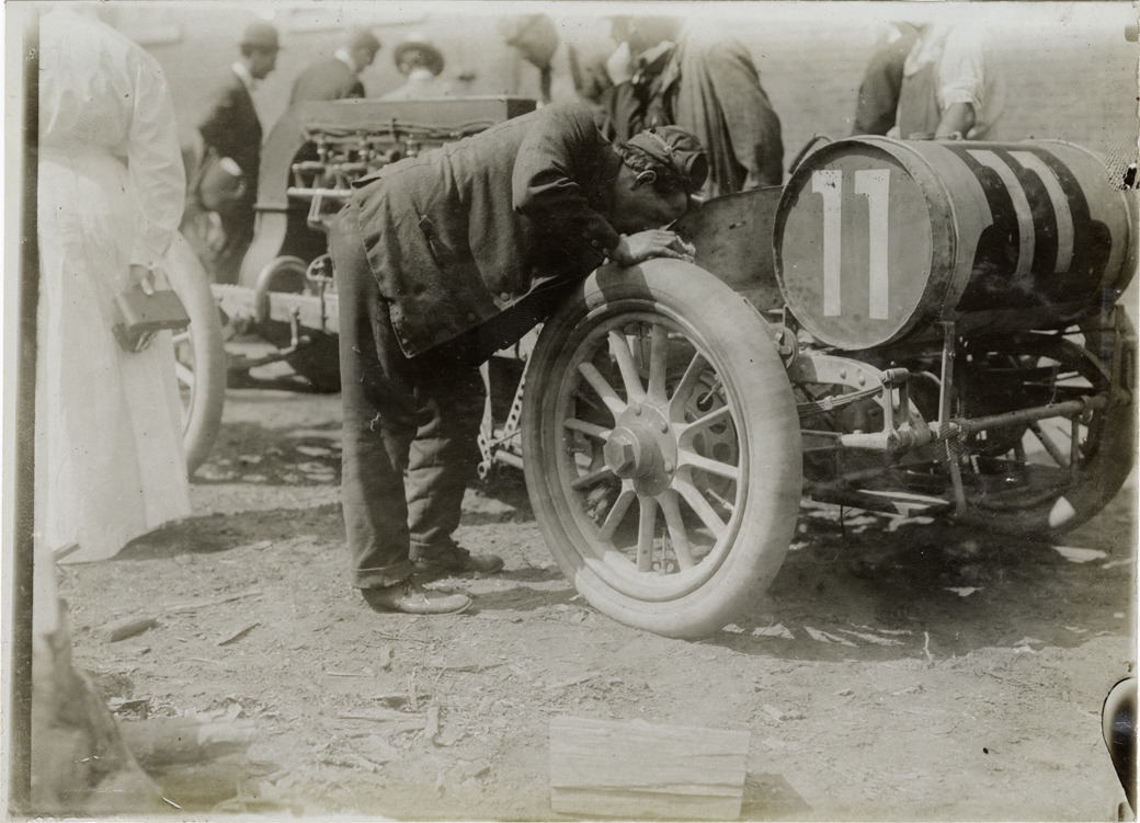 Favorite this☆ Motorist with 1906 Frayer-Miller racecar Description: View of a man with 1906 Frayer-Miller car no. 11. Handwritten on back: "Frayer-Miller, 1906." Details Resource ID: na044383 Subject: Automobiles, Racing Oscar Lear Automobile Company Photographic prints Date Issued: Unknown year Format: 1 photographic print ; 5 x 7 in. Member of: National Automotive History Collection Lazarnick Collection Filing Location: General photograph files, Frayer-Miller Rights: Physical rights are retained by DPL. Copyright is retained in accordance with U.S. copyright laws.