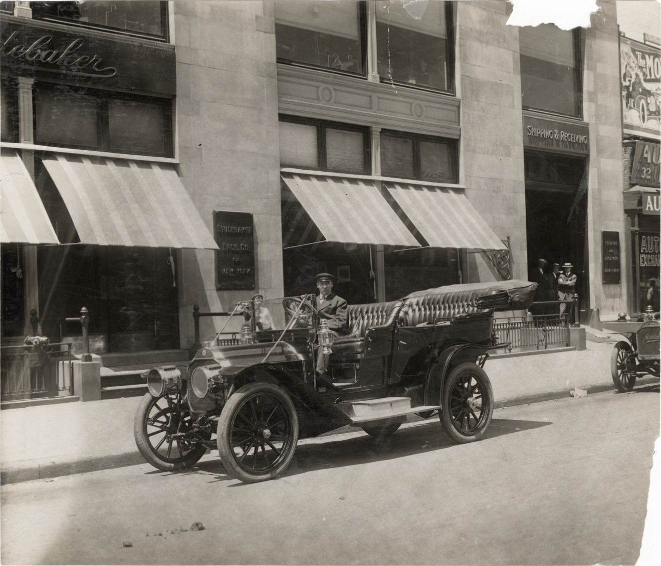 Favorite this☆ Motorist posing in Garford automobile Description: View of motorist posing in a Garford car in front of the Studebaker Bros. Co. of New York building. Handwritten on back: "Garford, c.1910." Details Resource ID: na044427 Subject: Automobiles Garford Company Photographic prints Date Issued: Unknown year Format: 1 photographic print ; 7.5 x 8.75 in. Member of: National Automotive History Collection Lazarnick Collection Filing Location: General photograph files, Garford Rights: Physical rights are retained by DPL. Copyright is retained in accordance with U.S. copyright laws.