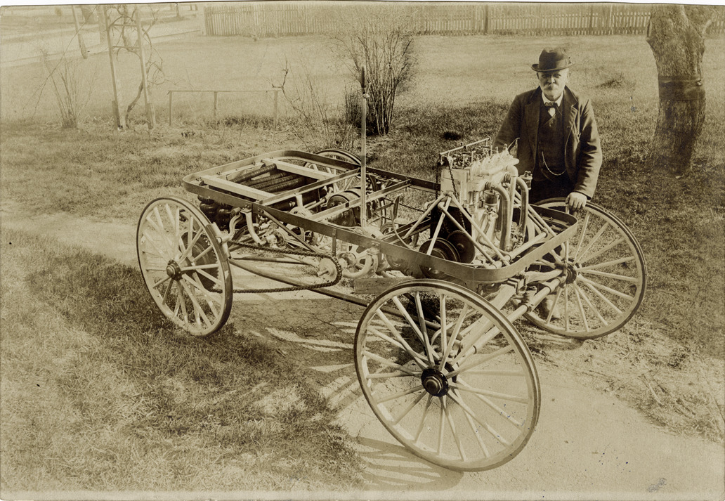 Favorite this☆ William H. Griffiths posing with Griffiths steam automobile chassis Description: View of William H. Griffiths posing with a chassis for a Griffiths steam car. Handwritten on back: "Wm. H. Griffiths." Details Resource ID: na044583 Subject: Automobiles, Steam--Chassis Griffiths, William H. Photographic prints Date Issued: Unknown year Format: 1 photographic print ; 4.75 x 7 in. Member of: National Automotive History Collection Filing Location: Griffiths Rights: Physical rights are retained by DPL. Copyright is retained in accordance with U.S. copyright laws.