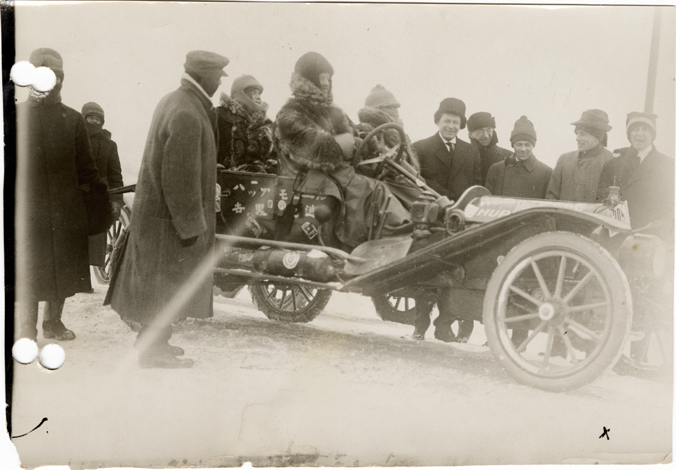 Motorists in Hupmobile automobile, Detroit, Michigan, Hupmobile World Tour
