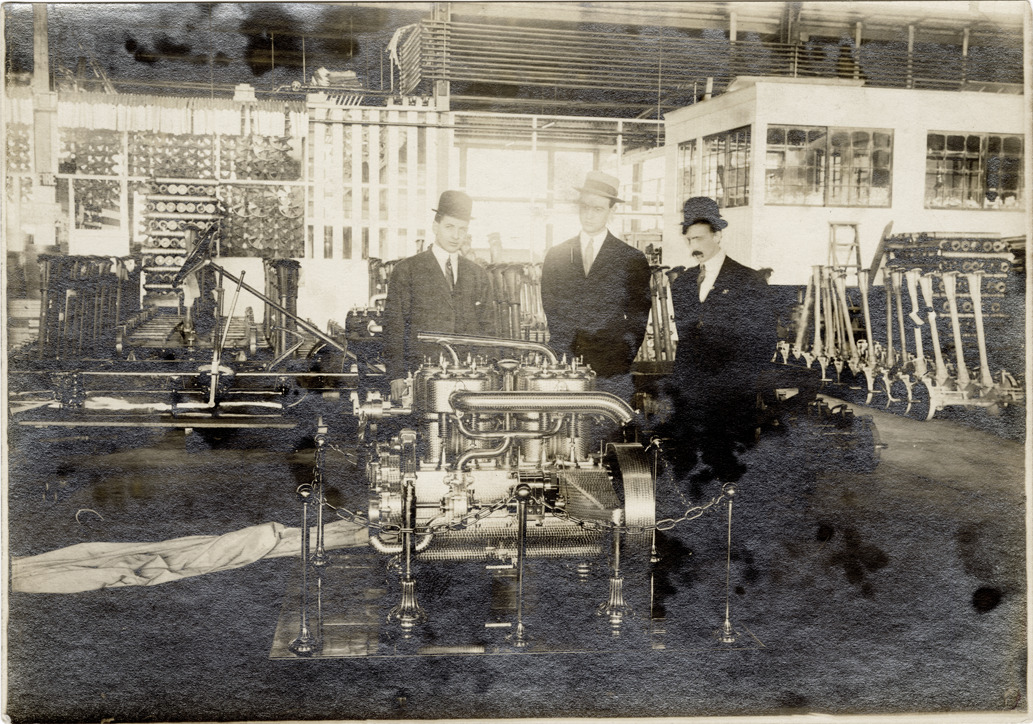 Favorite this☆ Men posing with Inter-State automobile engine Description: View of men posing with an engine for an Inter-State car. Handwritten on back: "Inter-State, app. 1909." Details Resource ID: na044859 Subject: Automobiles--Motors Inter-State Automobile Company Photographic prints Date Issued: Unknown year Format: 1 photographic print ; 5 x 7 in. Member of: National Automotive History Collection Filing Location: Inter-State Rights: Physical rights are retained by DPL. Copyright is retained in accordance with U.S. copyright laws.