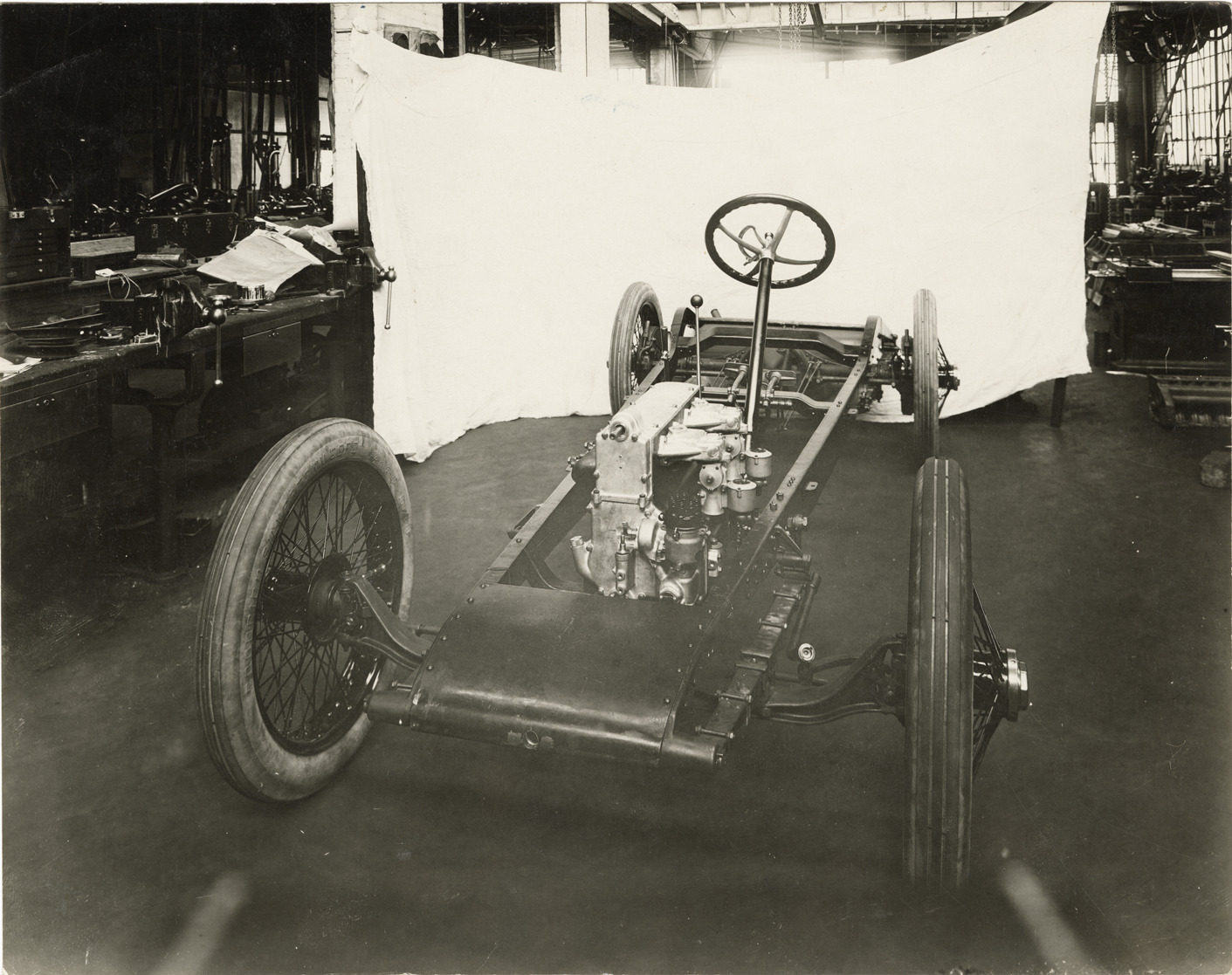 Favorite this☆ 1921 Kess-Line 8 automobile chassis and engine Description: View of a chassis and engine for a 1921 Kess-Line 8 car. Handwritten on back: "Front view. Kess-Line 8 chassis & engine, 1921, Detroit, Mich." Details Resource ID: na044913 Subject: Automobiles--Chassis Automobiles--Motors Kess-Line Motors Photographic prints Date Issued: Unknown year Format: 1 photographic print mounted on fabric ; 7.5 x 9.5 in. Member of: National Automotive History Collection Filing Location: Kess-Line Negative Number: 2,959A Rights: Physical rights are retained by DPL. Copyright is retained in accordance with U.S. copyright laws.
