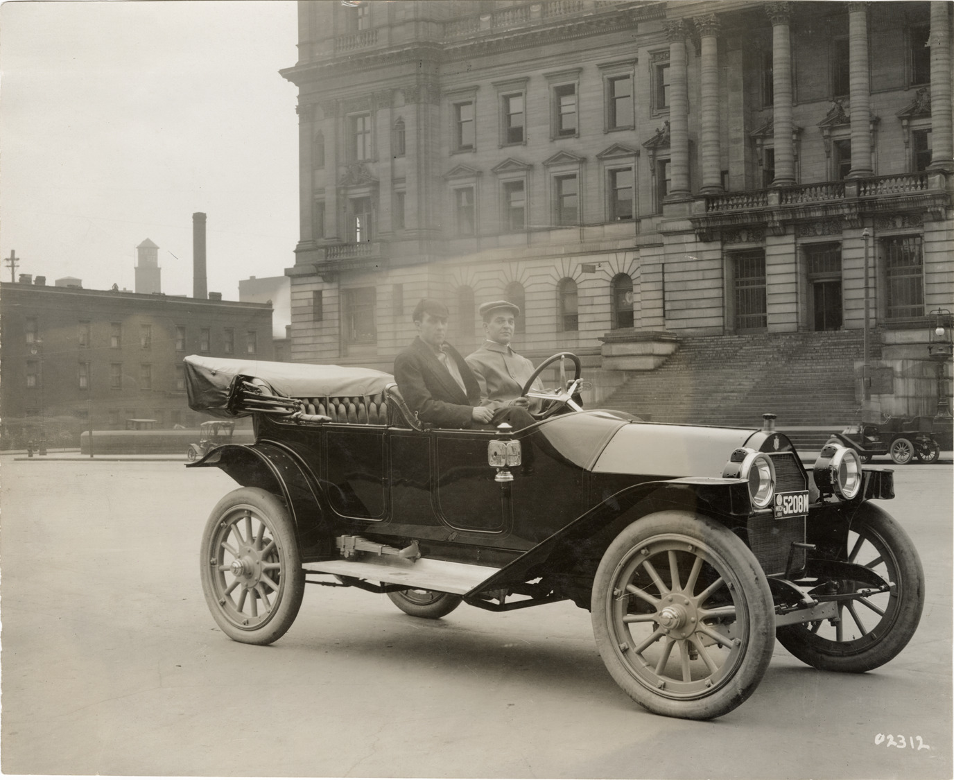 Favorite this☆ Motorists posing in a King automobile Description: View of two men posing in a King car. Stamped on back: "Spooner & Wells, Inc., photographers, 1231 Woodward Ave., Detroit, Mich., telephone North 1745." Handwritten on back: "King, ca. 1911." Details Resource ID: na044943 Creator: Spooner & Wells Subject: Automobiles King Motor Car Company (Detroit, Mich.) Photographers--Michigan--Detroit Photographic prints Date Issued: Unknown year Format: 1 photographic print ; 7.5 x 9.25 in. Member of: National Automotive History Collection Filing Location: General photograph files, King Rights: Physical rights are retained by DPL. Copyright is retained in accordance with U.S. copyright laws.