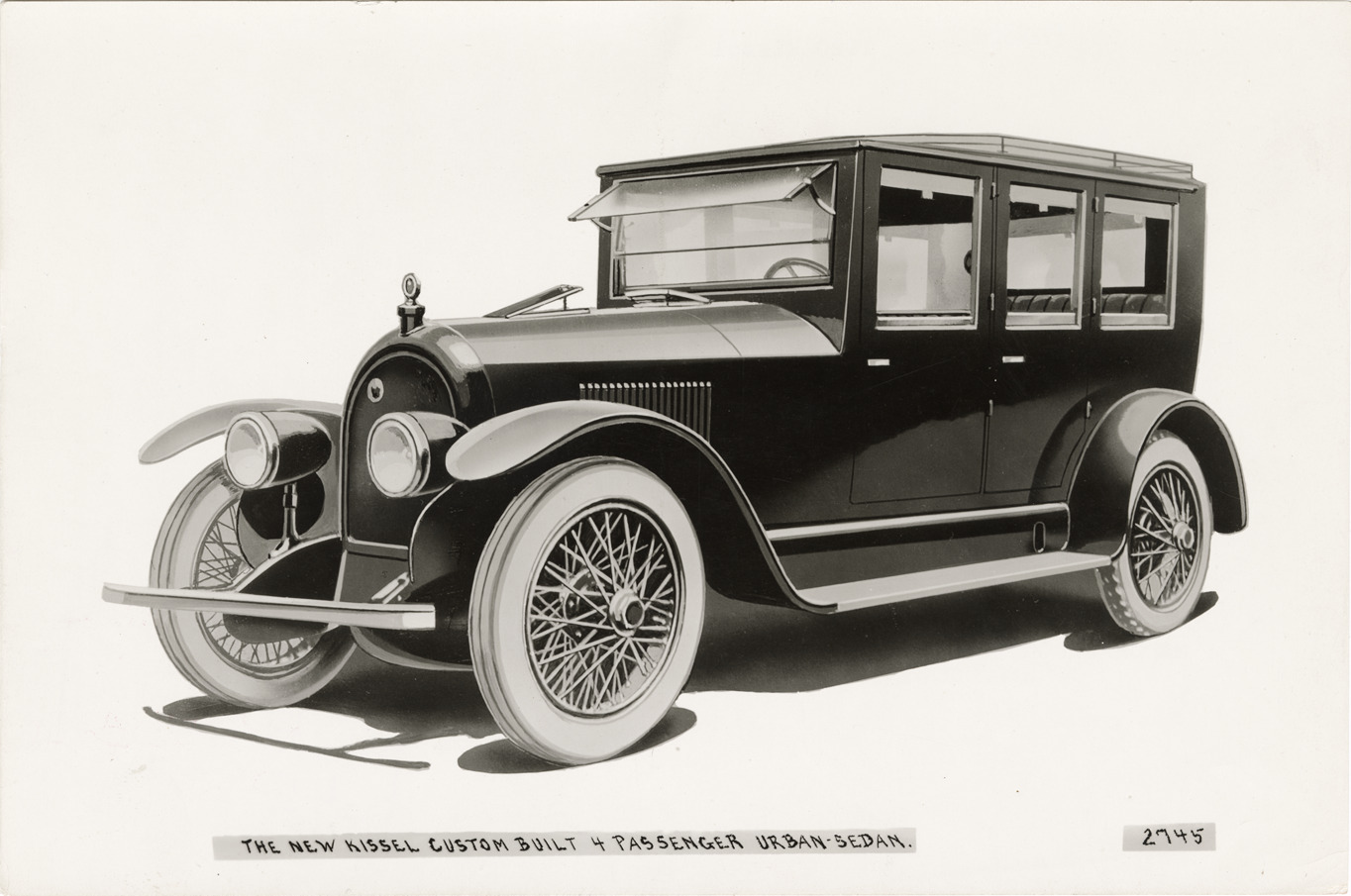 Favorite this☆ 1920 Kissel automobile Description: Artist's depiction of a 1920 Kissel sedan. Printed on front: "The new Kissel custom built 4 passenger urban sedan." Typed on back: "1920 Kissel." Details Resource ID: na044970 Subject: Automobiles Kissel Motor Car Company Photographic prints Date Issued: Unknown year Format: 1 photographic print ; 6 x 9 in. Member of: National Automotive History Collection Filing Location: Kissel Rights: Physical rights are retained by DPL. Copyright is retained in accordance with U.S. copyright laws.