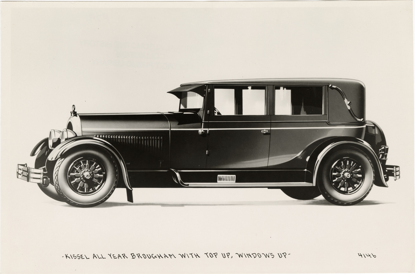 Favorite this☆ 1929 Kissel automobile Description: Artist's depiction of a 1929 Kissel all year brougham. Printed on front: "Kissel all year brougham with top up, windows up." Handwritten on back: "1929." Details Resource ID: na044975 Subject: Automobiles Kissel Motor Car Company Photographic prints Date Issued: Unknown year Format: 1 photographic print ; 6 x 9 in. Member of: National Automotive History Collection Filing Location: Kissel Rights: Physical rights are retained by DPL. Copyright is retained in accordance with U.S. copyright laws.