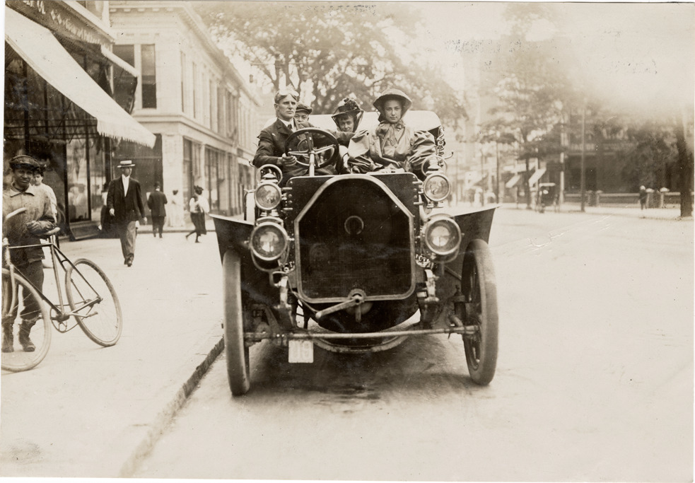 Favorite this☆ Motorists in Knox automobile, 1906 Glidden Tour Description: Front view of driver and passengers in Knox car during the 1906 Glidden Tour. Handwritten on back: "Knox, 1906 Glidden Tour." Details Resource ID: na045005 Subject: Automobiles Knox Automobile Company Glidden Tour (1906) Automobile driving--Competitions Photographic prints Date Issued: 1906-07 Format: 1 photographic print ; 4.5 x 6.5 in. Member of: National Automotive History Collection Lazarnick Collection Filing Location: General photograph files, Knox Rights: Physical rights are retained by DPL. Copyright is retained in accordance with U.S. copyright laws.