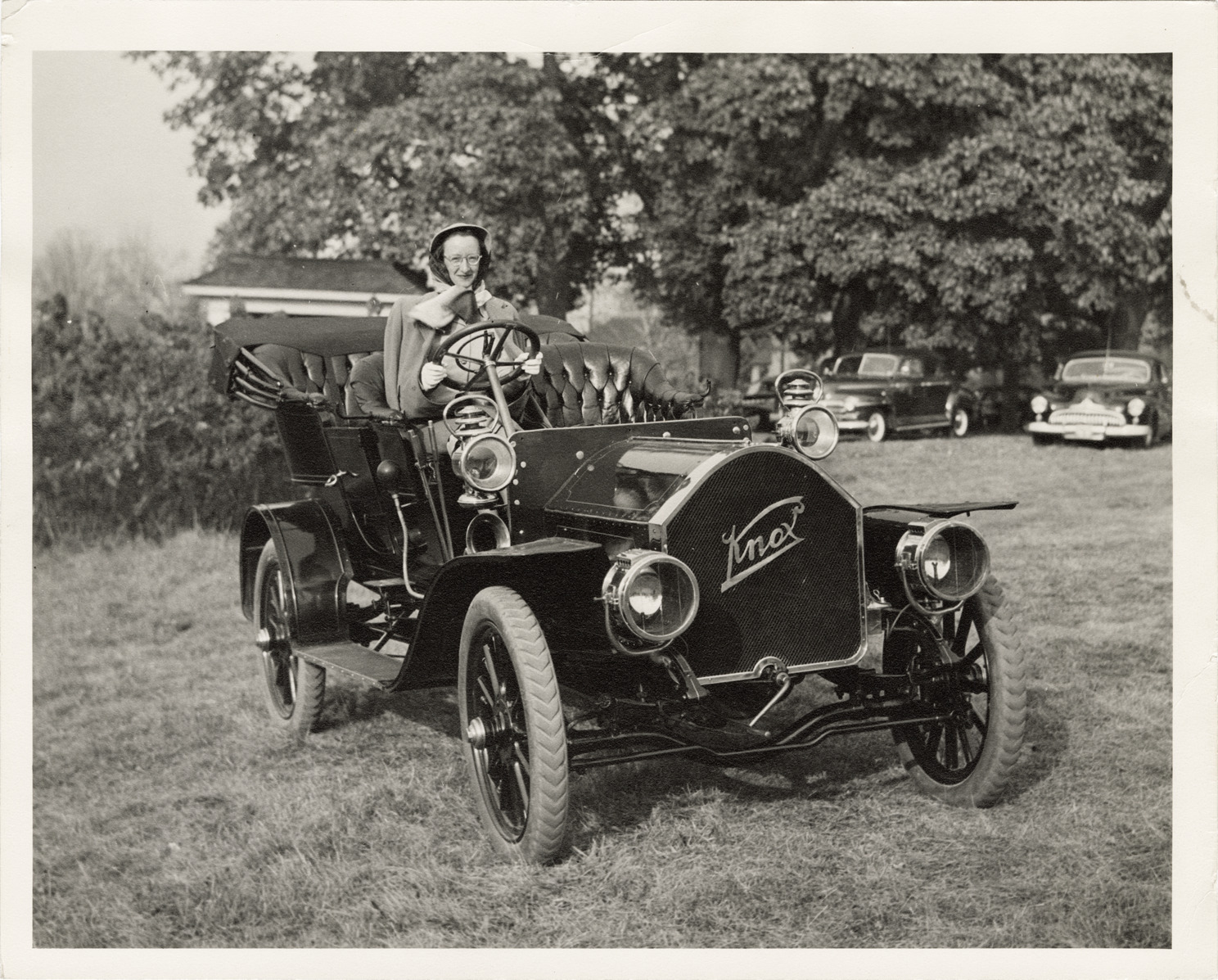 Favorite this☆ Woman motorist posing in 1907 Knox automobile Description: View of woman motorist posing in a 1907 Knox car. Handwritten on back: "Air cooled tour, 1907. Knox, 1907." Details Resource ID: na045032 Subject: Automobiles Knox Automobile Company Women automobile drivers Photographic prints Date Issued: Unknown year Format: 1 photographic print ; 8 x 10 in. Member of: National Automotive History Collection Filing Location: Knox Rights: Physical rights are retained by DPL. Copyright is retained in accordance with U.S. copyright laws.