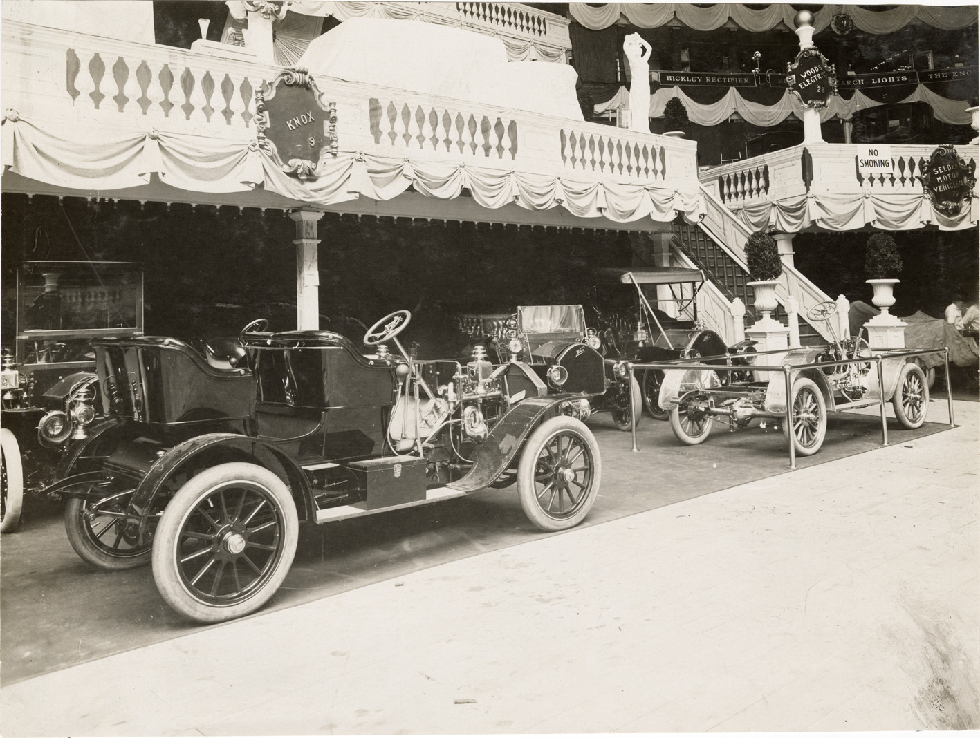 Favorite this☆ 1908 Knox automobiles and chassis at trade show Description: View of 1908 Knox cars and chassis on display at trade show. Stamped on back: "Spooner and Wells, 1931 Broadway, New York, duplicates any time, enlargements all sizes, tel. 3472-3473 Col., credit appreciated." Handwritten on back: "Knox, 1908." Details Resource ID: na045034 Creator: Spooner & Wells Subject: Automobiles Automobiles--Chassis Knox Automobile Company Trade shows Photographers--New York (State)--New York Photographic prints Date Issued: 1908 Format: 1 photographic print ; 7 x 9.5 in. Member of: National Automotive History Collection Lazarnick Collection Filing Location: General photograph files, Knox Rights: Physical rights are retained by DPL. Copyright is retained in accordance with U.S. copyright laws.