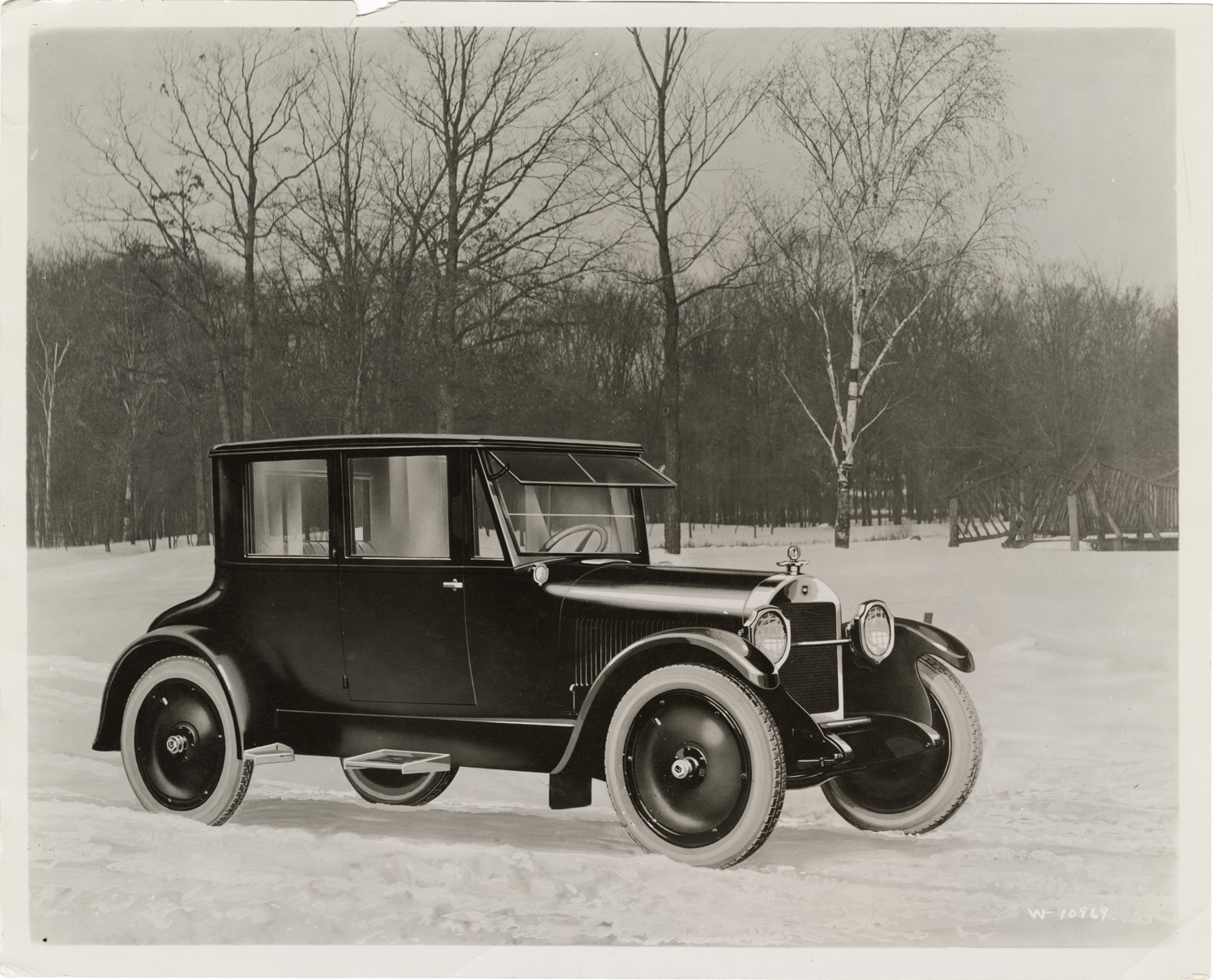 Artist's depiction of a 1923 Liberty car on snow-covered road. Handwritten on back: "1923 Liberty."