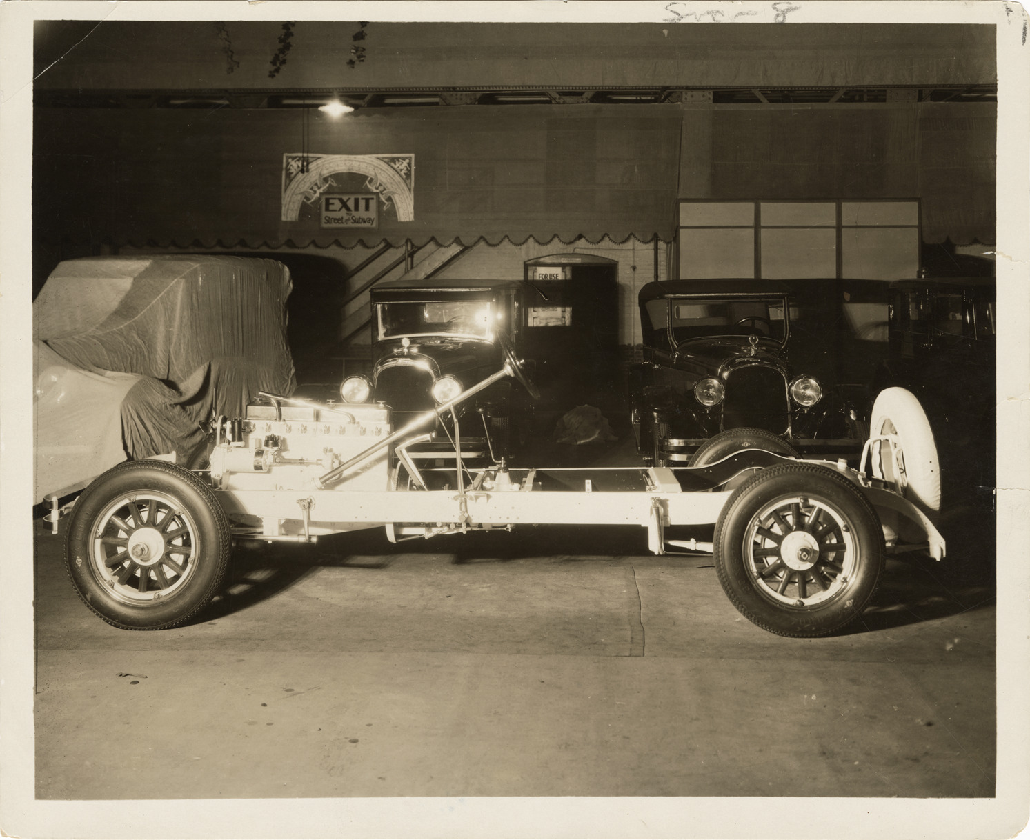 Favorite this☆ 1926 Locomobile automobile chassis at trade show Description: View of the chassis for a 1926 Locomobile Junior Eight car on display at trade show. Handwritten on back: "1926 Locomobile Junior Eight. Special show chassis." Details Resource ID: na045216 Subject: Locomobile automobile Automobiles--Chassis Trade shows Photographic prints Date Issued: 1926-01 Format: 1 photographic print ; 8 x 10 in. Member of: National Automotive History Collection Lazarnick Collection Filing Location: General photograph files, Locomobile, 1920-1929 Negative Number: 3,193 F-2 Rights: Physical rights are retained by DPL. Copyright is retained in accordance with U.S. copyright laws.