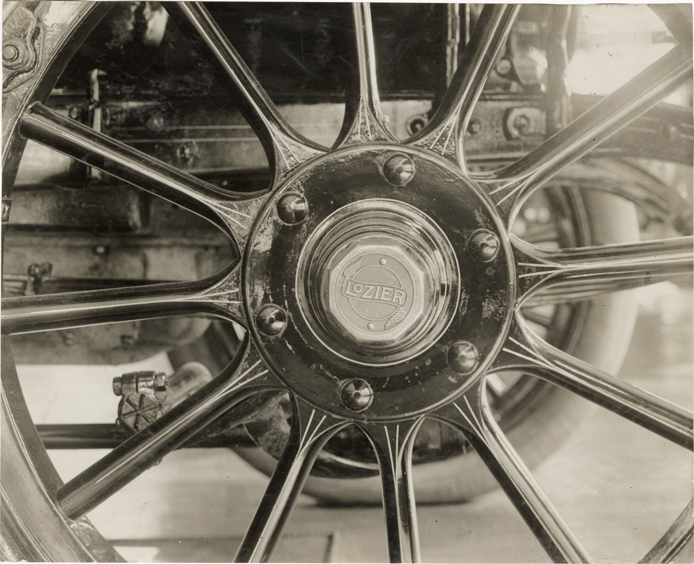 Favorite this☆ Lozier automobile wheel and hubcap Description: Close-up view of a wheel and hubcap for a Lozier car. Stamped on back: "Spooner & Wells, Inc., photographers, telephones 3472-3473 Columbus, 1931 Broadway, New York." Handwritten on back: "Lozier, ca. 1910." Details Resource ID: na045259 Creator: Spooner & Wells Subject: Automobiles--Wheels Lozier Motor Company Photographers--New York (State)--New York Photographic prints Date Issued: Unknown year Format: 1 photographic print ; 7.5 x 9.25 in. Member of: National Automotive History Collection Lazarnick Collection Filing Location: General photograph files, Lozier, 1909-1910 Rights: Physical rights are retained by DPL. Copyright is retained in accordance with U.S. copyright laws.