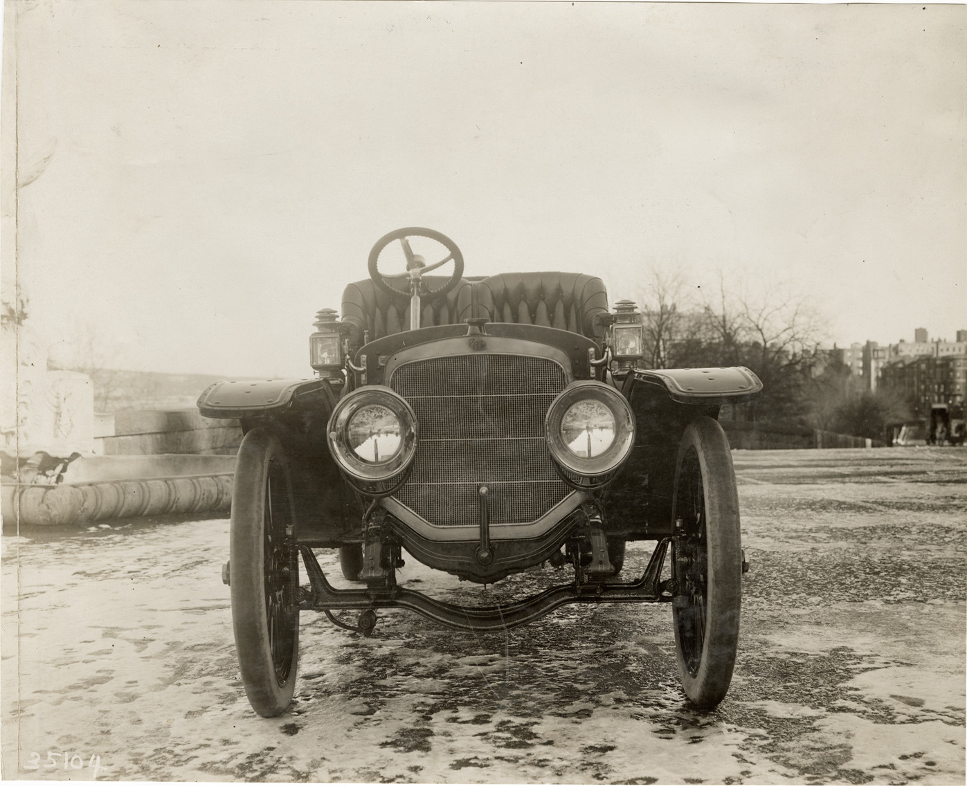 Front view of a Lozier car. Handwritten on back: "Lozier, ca. 1910."