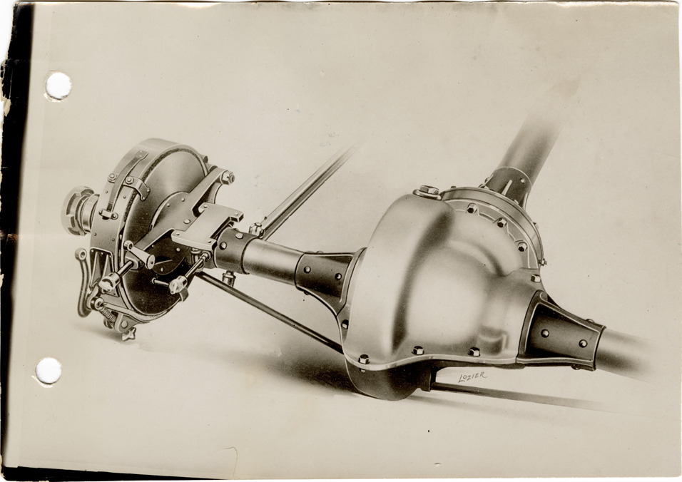 Artist's depiction of an axle for a Lozier car. Handwritten on back: "Lozier, ca. 1911."