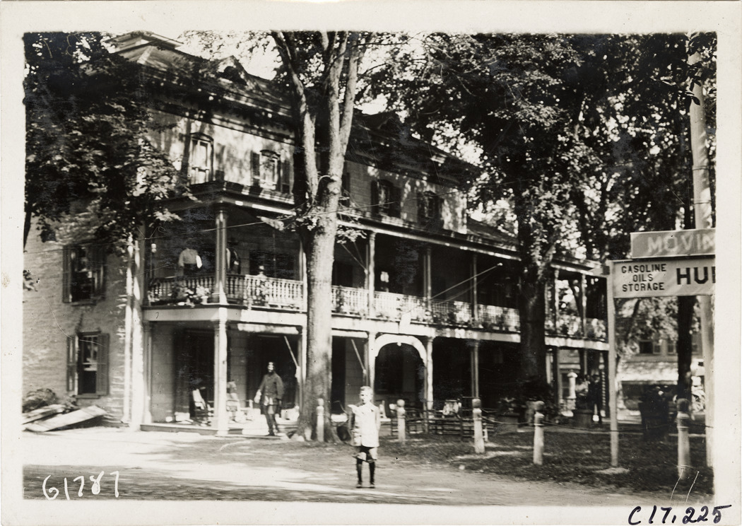 Temple Abernathy posing in front of hotel, 1910 Abernathy Kids New York to Oklahoma Tour