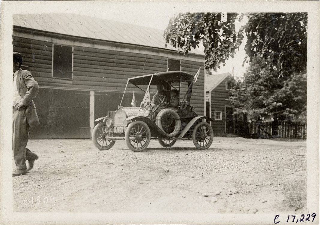 Louis Abernathy and passenger in Brush automobile, 1910 Abernathy Kids New York to Oklahoma Tour