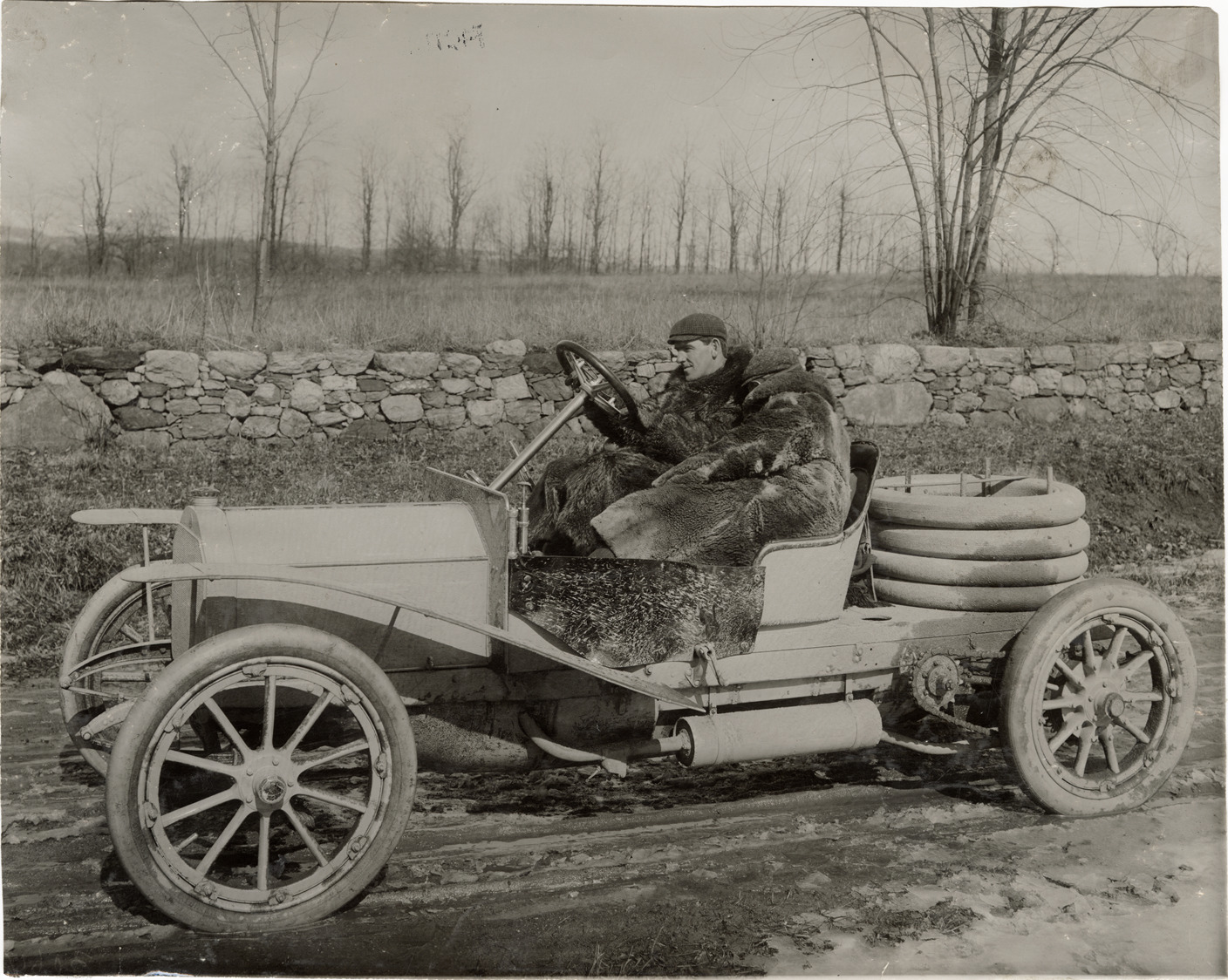 Favorite this☆ Motorists posing in 1908 Maja automobile Description: View of two men, wearing fur coats, posing in a 1908 Maja car. Stamped on back: "Photo by N. Lazarnick, 29 West 42nd Street, N.Y., tel. 594 Bryant." Handwritten on back: "Maja, 1908." Details Resource ID: na045395 Creator: Lazarnick, Nathan Subject: Automobiles Maja Company Fur garments Photographers--New York (State)--New York Photographic prints Date Issued: Unknown year Format: 1 photographic print ; 7.5 x 9.5 in. Member of: National Automotive History Collection Lazarnick Collection Filing Location: General photograph files, Maja Rights: Physical rights are retained by DPL. Copyright is retained in accordance with U.S. copyright laws.