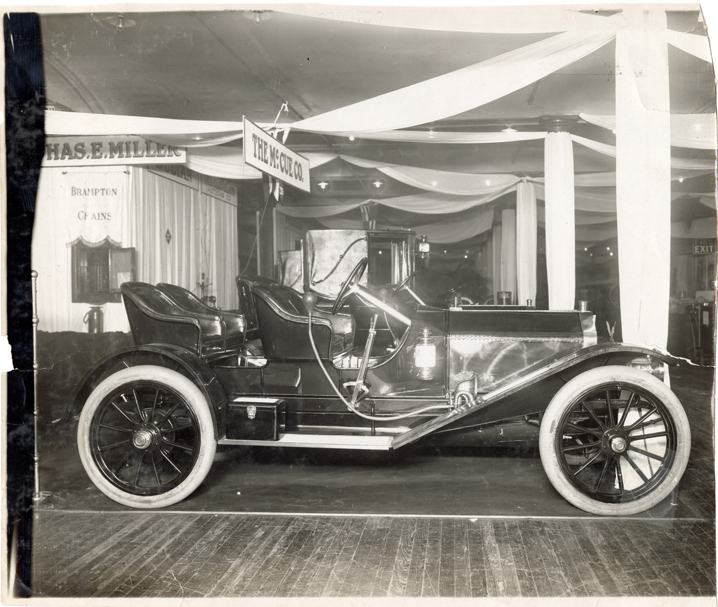Favorite this☆ 1909 McCue automobile at trade show Description: View of a 1909 McCue car on display at trade show. "The McCue Co." sign is displayed over exhibit. Handwritten on back: "McCue, 1909." Details Resource ID: na045581 Subject: Automobiles McCue Company Trade shows Photographic prints Date Issued: 1909 (year approximate) Format: 1 photographic print ; 8 x 9.5 in. Member of: National Automotive History Collection Lazarnick Collection Filing Location: General photograph files, McCue Rights: Physical rights are retained by DPL. Copyright is retained in accordance with U.S. copyright laws.