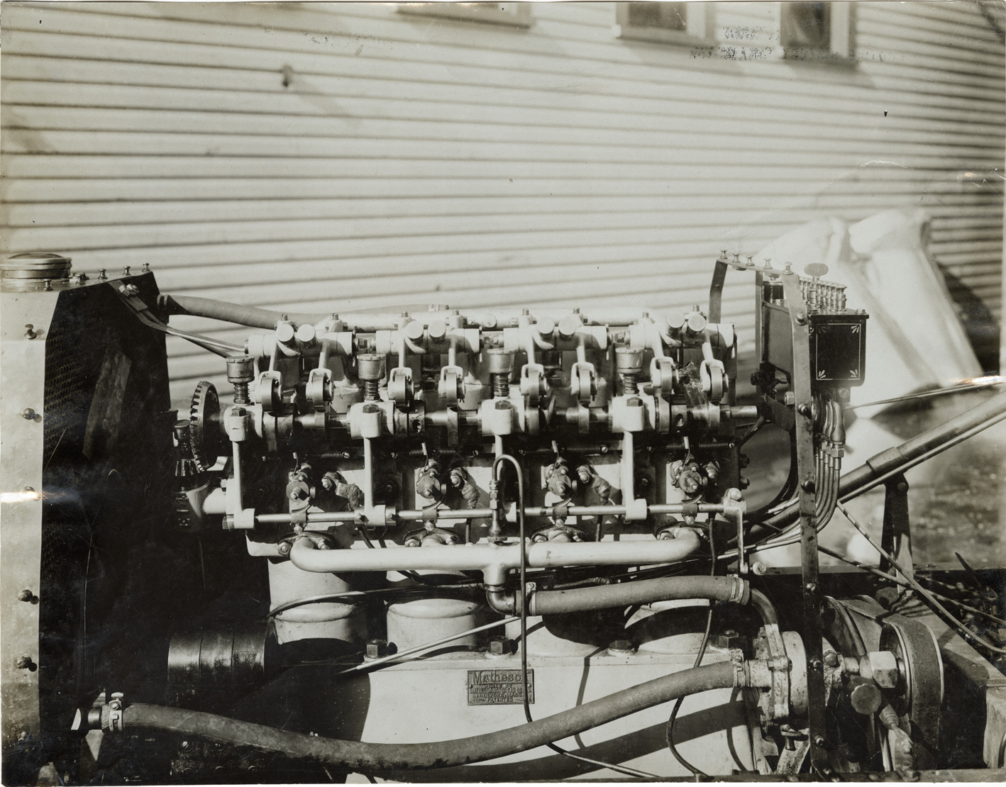 Favorite this☆ Engine, 1905 Matheson racecar Description: Close-up view of the engine for a 1905 Matheson racecar. Handwritten on back: "Matheson racer, '05." Details Resource ID: na045599 Subject: Automobiles, Racing--Motors Matheson Motor Car Company Photographic prints Date Issued: Unknown year Format: 1 photographic print ; 7.25 x 9.5 in. Member of: National Automotive History Collection Lazarnick Collection Filing Location: General photograph files, Matheson Rights: Physical rights are retained by DPL. Copyright is retained in accordance with U.S. copyright laws.