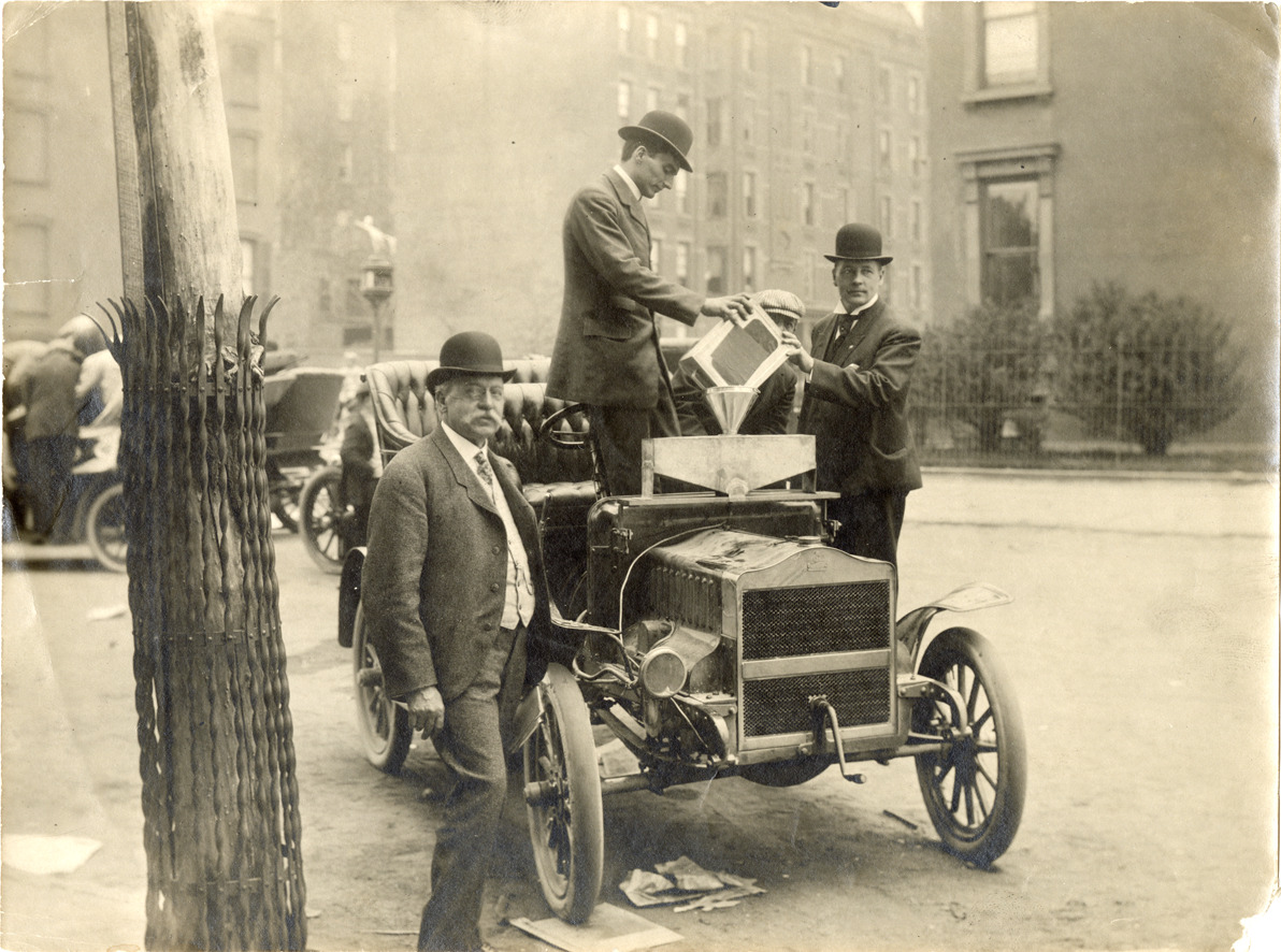 Favorite this☆ Motorists fueling a Maxwell automobile Description: View of motorists fueling a Maxwell car. Handwritten on back: "Maxwell, app. 1907." Details Resource ID: na045670 Subject: Automobiles Maxwell-Briscoe Motor Company Photographic prints Date Issued: Unknown year Format: 1 photographic print ; 4.5 x 6.5 in. Member of: National Automotive History Collection Lazarnick Collection Filing Location: General photograph files, Maxwell, 1907 Negative Number: 3,277 F-2 Rights: Physical rights are retained by DPL. Copyright is retained in accordance with U.S. copyright laws.