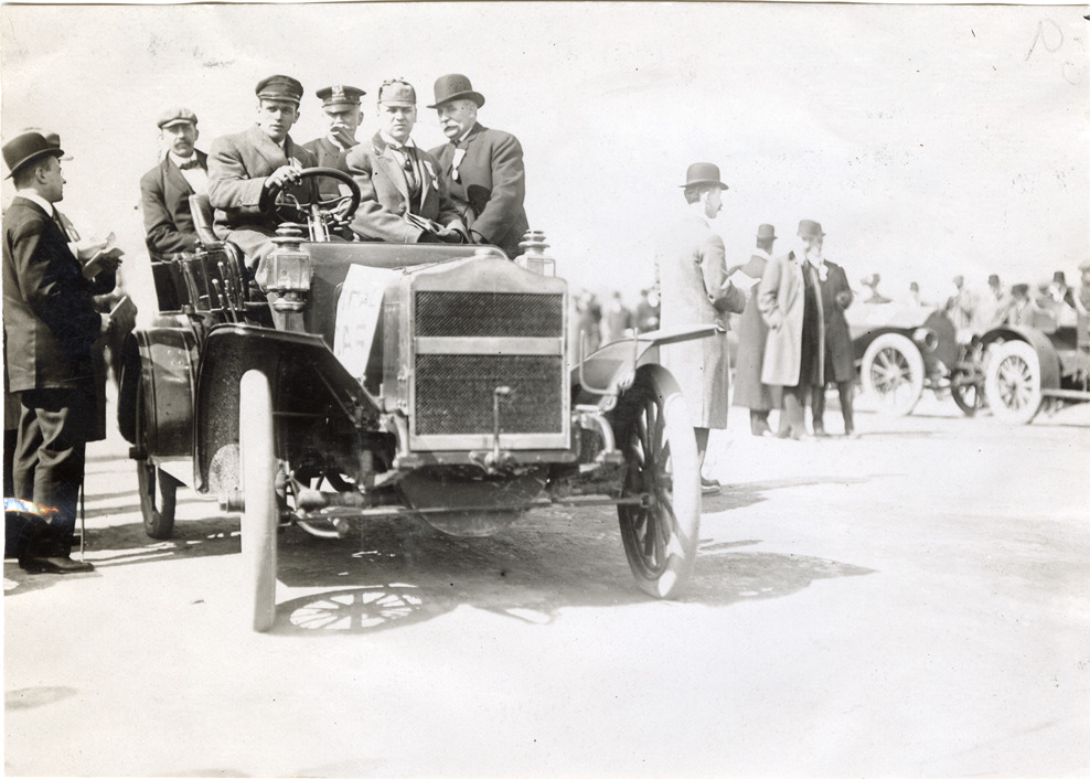 Motorists posing in Maxwell automobile