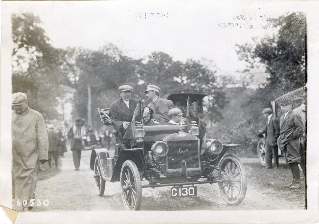 Favorite this☆ Motorists in 1909 Maxwell automobile Description: View of motorists in a 1909 Maxwell car. Stamped on back: "Spooner & Wells, Inc., photographers, telephones 3472-3473 Columbus, 1931 Broadway, New York." Handwritten on back: "Maxwell, 1909. Model: LD." Details Resource ID: na045731 Creator: Spooner & Wells Subject: Automobiles Maxwell-Briscoe Motor Company Photographers--New York (State)--New York Photographic prints Date Issued: Unknown year Format: 1 photographic print ; 5 x 7 in. Member of: National Automotive History Collection Lazarnick Collection Filing Location: General photograph files, Maxwell, 1909 Rights: Physical rights are retained by DPL. Copyright is retained in accordance with U.S. copyright laws.