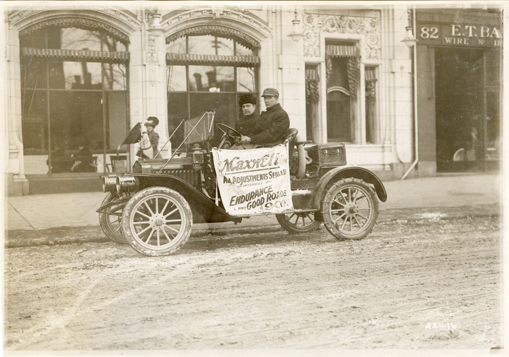 Favorite this☆ Motorists posing in Maxwell automobile Description: View of motorist posing in Maxwell car. Banner on car reads: "Maxwell. All adjustments sealed in interest of endurance and good roads. $900." Handwritten on back: "Maxwell, ca. 1910-11." Details Resource ID: na045747 Subject: Automobiles Maxwell-Briscoe Motor Company Photographic prints Date Issued: Unknown year Format: 1 photographic print ; 5 x 7 in. Member of: National Automotive History Collection Lazarnick Collection Filing Location: General photograph files, Maxwell, 1910 Rights: Physical rights are retained by DPL. Copyright is retained in accordance with U.S. copyright laws.