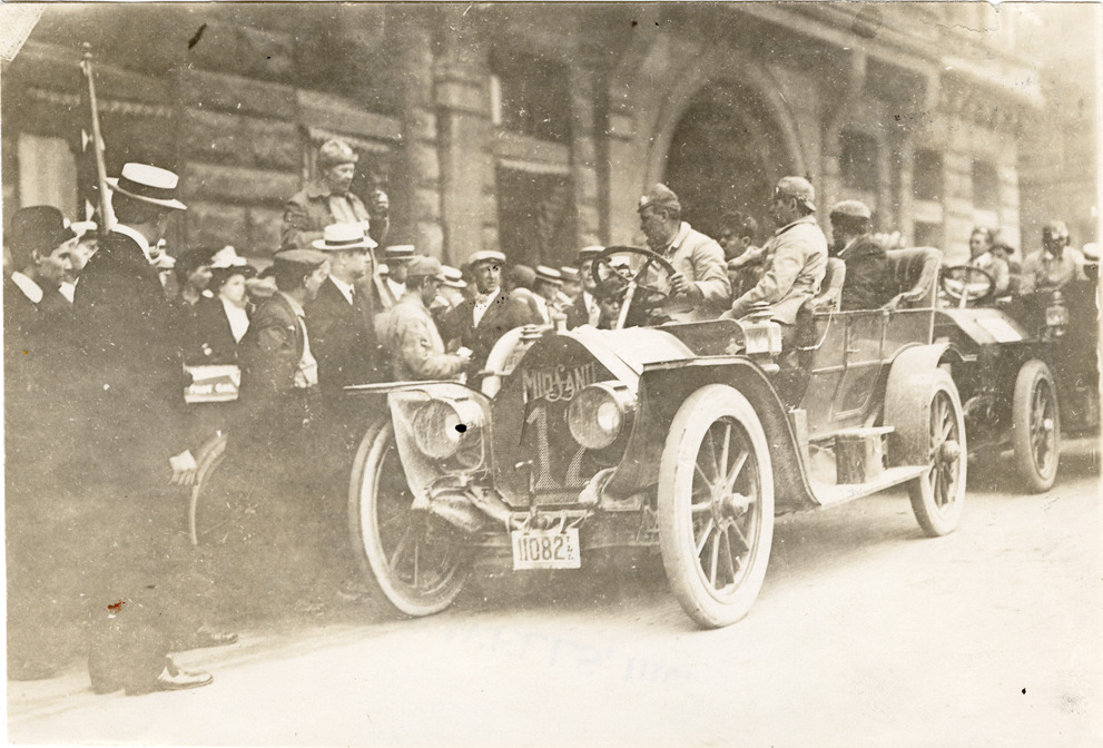 Favorite this☆ Motorists in 1909 Midland automobile Description: View of motorists in a 1909 Midland car. Onlookers on sidewalk. Stamped on back: "Spooner & Wells, Inc., photographers, telephones 3472-3473 Columbus, 1931 Broadway, New York." Handwritten on back: "Midland, 1909." Details Resource ID: na045855 Creator: Spooner & Wells Subject: Automobiles Midland Motor Company Photographers--New York (State)--New York Photographic prints Date Issued: Unknown year Format: 1 photographic print ; 4.5 x 6.5 in. Member of: National Automotive History Collection Lazarnick Collection Filing Location: General photograph files, Midland Rights: Physical rights are retained by DPL. Copyright is retained in accordance with U.S. copyright laws.