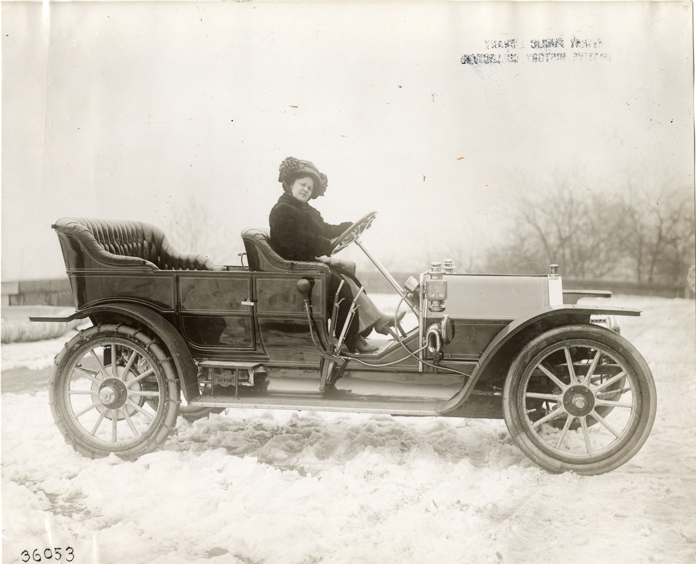 Favorite this☆ Woman motorist posing in Midland automobile Description: View of a woman motorist posing in a Midland car on snow-covered ground. Stamped on back: "Spooner & Wells, Inc., photographers, telephones 3472-3473 Columbus, 1931 Broadway, New York." Handwritten on back: "Midland, ca. 1910." Details Resource ID: na045861 Creator: Spooner & Wells Subject: Automobiles Midland Motor Company Women automobile drivers Photographers--New York (State)--New York Photographic prints Date Issued: Unknown year Format: 1 photographic print ; 7.75 x 9.5 in Member of: National Automotive History Collection Lazarnick Collection Filing Location: General photograph files, Midland Rights: Physical rights are retained by DPL. Copyright is retained in accordance with U.S. copyright laws.
