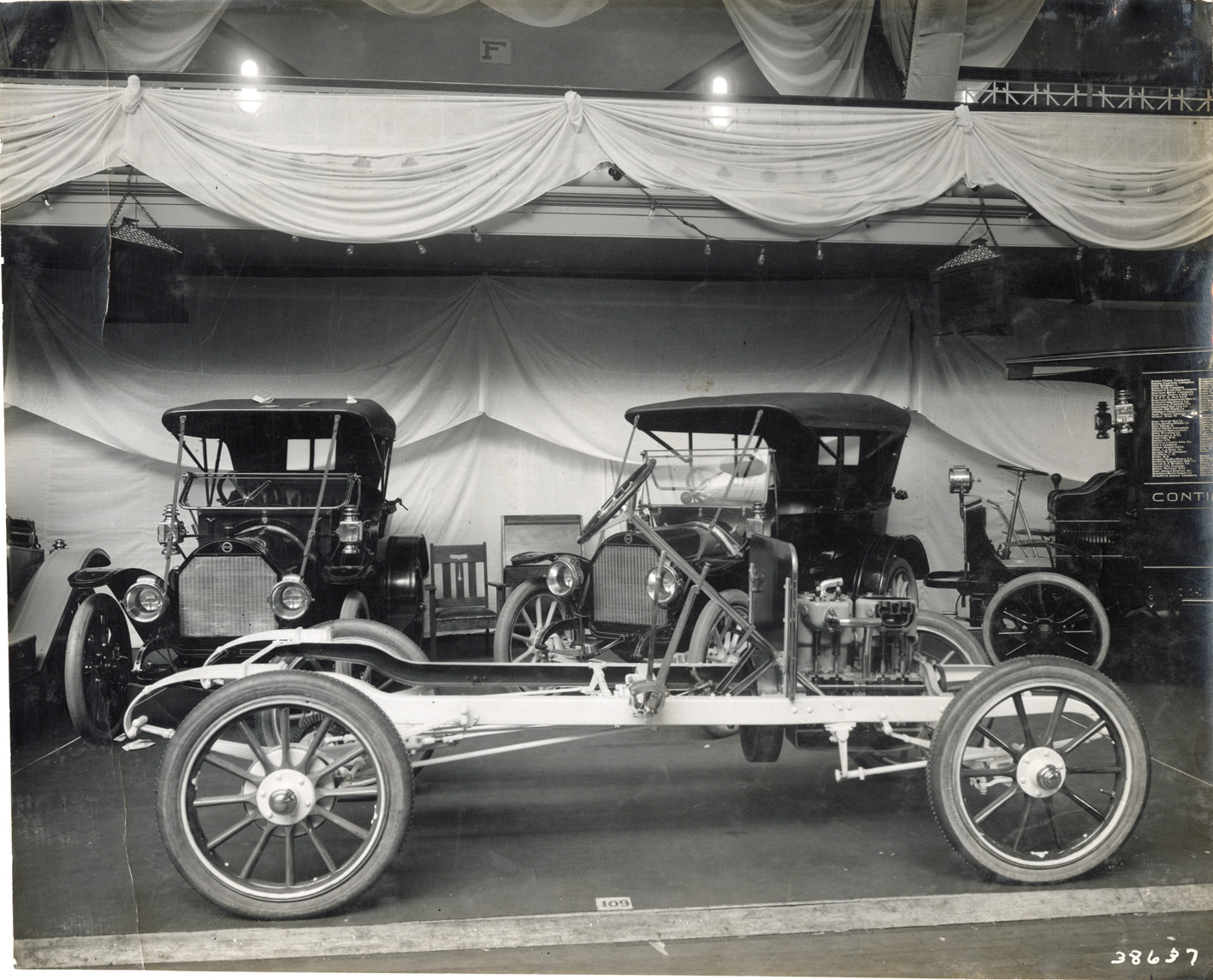 Favorite this☆ 1912 Moon automobiles and chassis at trade show Description: View of 1912 Moon cars and chassis on display at trade show. Stamped on back: "Spooner & Wells, Inc., photographers, telephones 3472-3473 Columbus, 1931 Broadway, New York." Handwritten on back: "Moon, 1912." Details Resource ID: na046008 Creator: Spooner & Wells Subject: Automobiles Automobiles--Chassis Moon Motor Car Company Trade shows Photographers--New York (State)--New York Photographic prints Date Issued: 1912 (year approximate) Format: 1 photographic print ; 7.75 x 9.5 in. Member of: National Automotive History Collection Lazarnick Collection Filing Location: General photograph files, Moon Rights: Physical rights are retained by DPL. Copyright is retained in accordance with U.S. copyright laws.