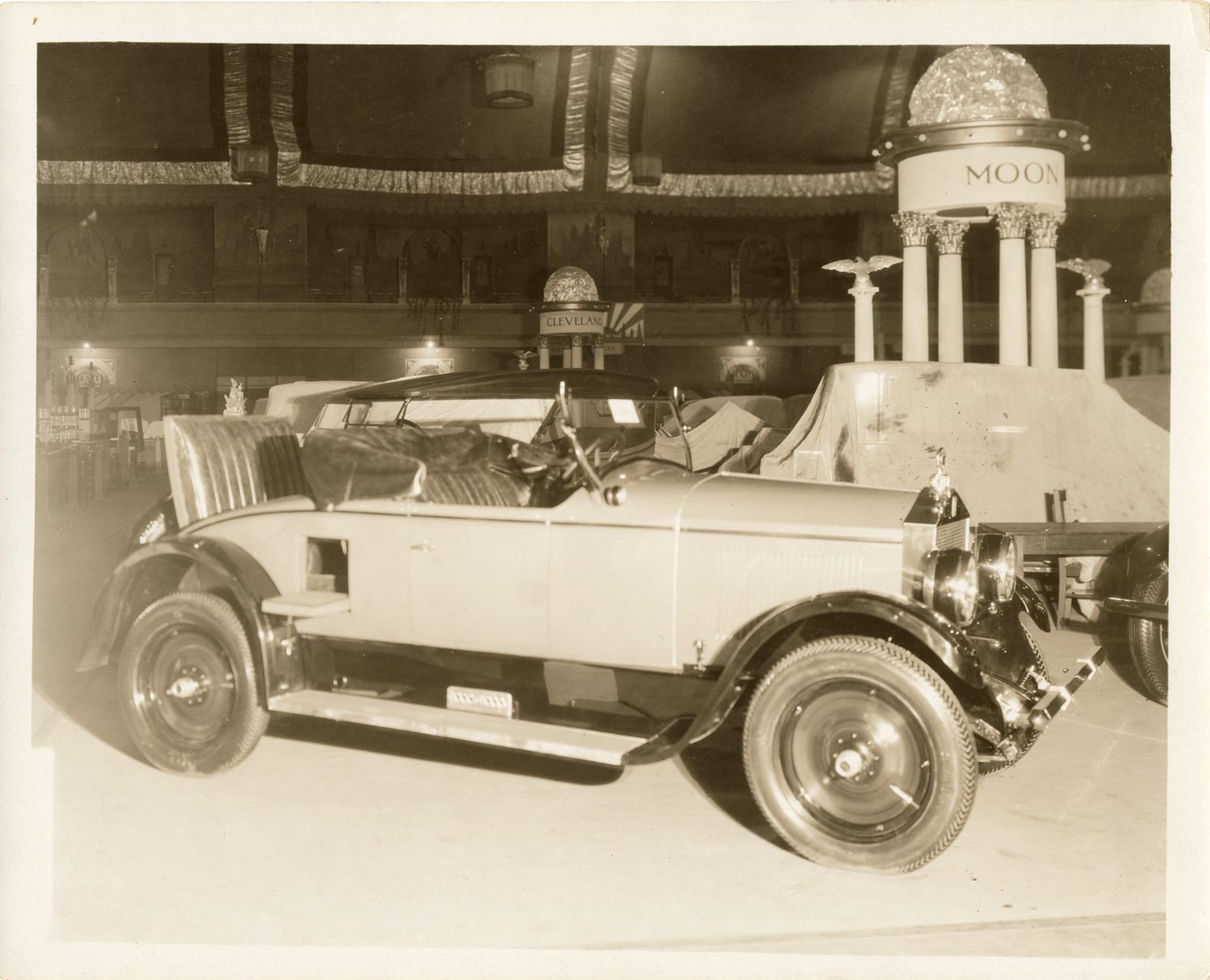 Favorite this☆ Moon automobile at trade show Description: View of a Moon car on display at trade show. Handwritten on back: "Moon, ca. 1925." Details Resource ID: na046023 Subject: Automobiles Moon Motor Car Company Trade shows Photographic prints Date Issued: 1925 (year approximate) Format: 1 photographic print ; 8 x 10 in. Member of: National Automotive History Collection Lazarnick Collection Filing Location: General photograph files, Moon Rights: Physical rights are retained by DPL. Copyright is retained in accordance with U.S. copyright laws.