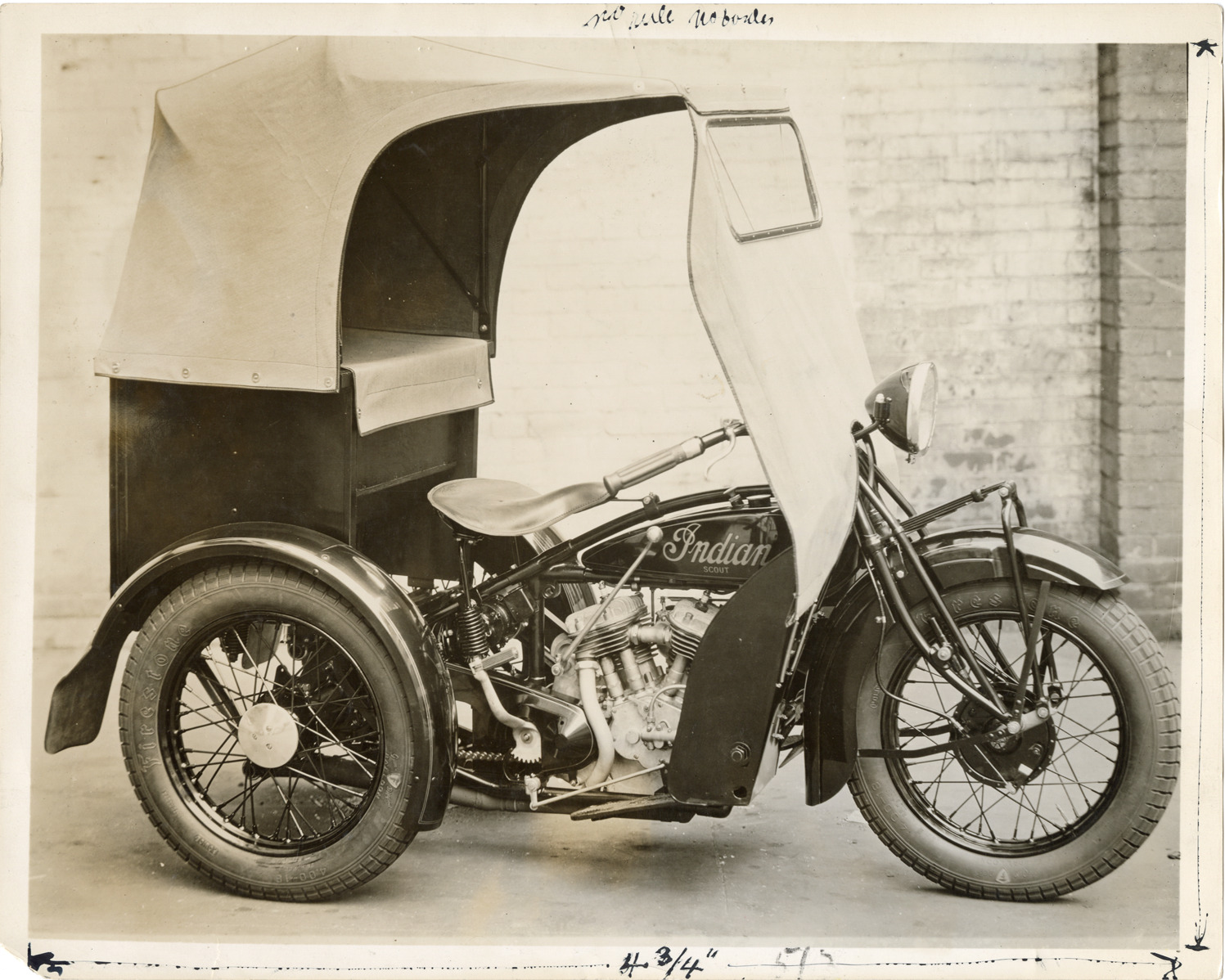Favorite this☆ 1931 Indian dispatch motorcycle Description: View of a 1931 Indian dispatch motorcycle. Typed on back: "New dispatch car in production of Indian Motorcycle Co., Springfield, Mass." Handwritten on back: "Indian, 1931." Details Resource ID: na046156 Subject: Indian motorcycle Photographic prints Date Issued: 1931 (year approximate) Format: 1 photographic print ; 8 x 10 in. Member of: National Automotive History Collection Filing Location: Motorcycles--Indian Rights: Physical rights are retained by DPL. Copyright is retained in accordance with U.S. copyright laws.