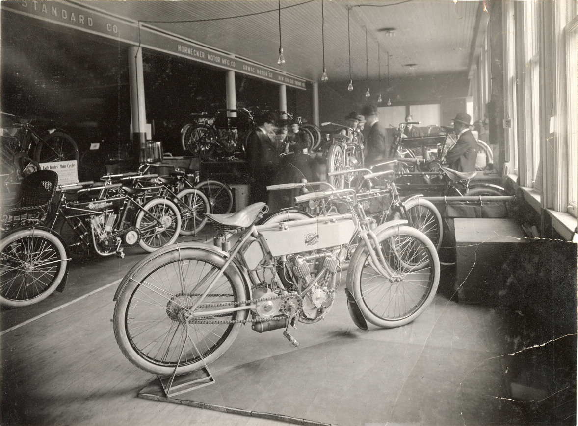 1909 Reading-Standard motorcycles at trade show