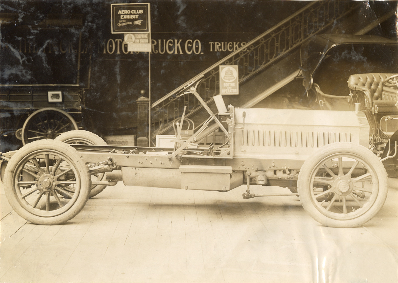 Favorite this☆ 1906 Napier racecar at trade show Description: View of a 1906 Napier racecar on display at trade show. "Aero Club exhibit" sign in background. Stamped on back: "Photo by F. Ed. Spooner, 1536 B'way, telephone 6536-38th St., New York, N.Y." Handwritten on back: "Napier, 1906." Details Resource ID: na046253 Creator: Spooner, F. Ed. Subject: Napier automobiles Automobiles, Racing Trade shows Photographers--New York (State)--New York Photographic prints Date Issued: Unknown year Format: 1 photographic print ; 6.5 x 9 in. Member of: National Automotive History Collection Lazarnick Collection Filing Location: General photograph files, Napier Rights: Physical rights are retained by DPL. Copyright is retained in accordance with U.S. copyright laws.