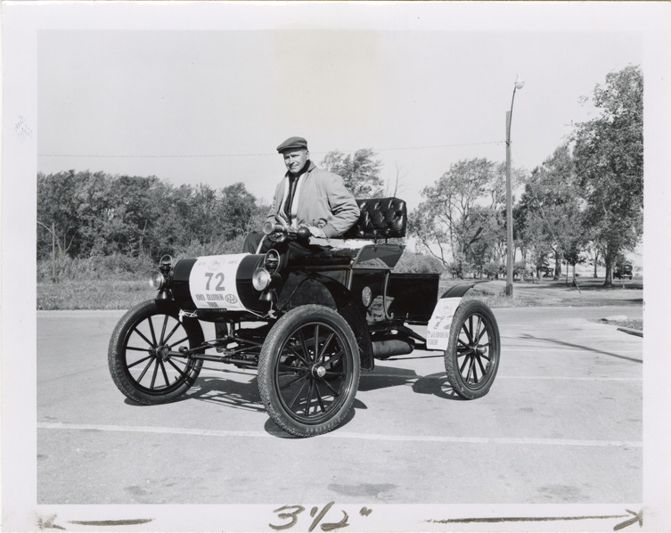 Favorite this☆ Motorist posing in 1903 Oldsmobile automobile, 1963 Glidden Tour Description: View of a motorist posing in 1903 Oldsmobile car no. 72 during the 1963 Glidden Tour. Handwritten on back: "Oldsmobile, 1903. Curved dash." Details Resource ID: na046438 Subject: Oldsmobile automobile Glidden Tour (1963) Photographic prints Date Issued: 1963 Format: 1 photographic print ; 4 x 5 in. Member of: National Automotive History Collection Filing Location: Oldsmobile, 1903 Rights: Physical rights are retained by DPL. Copyright is retained in accordance with U.S. copyright laws.