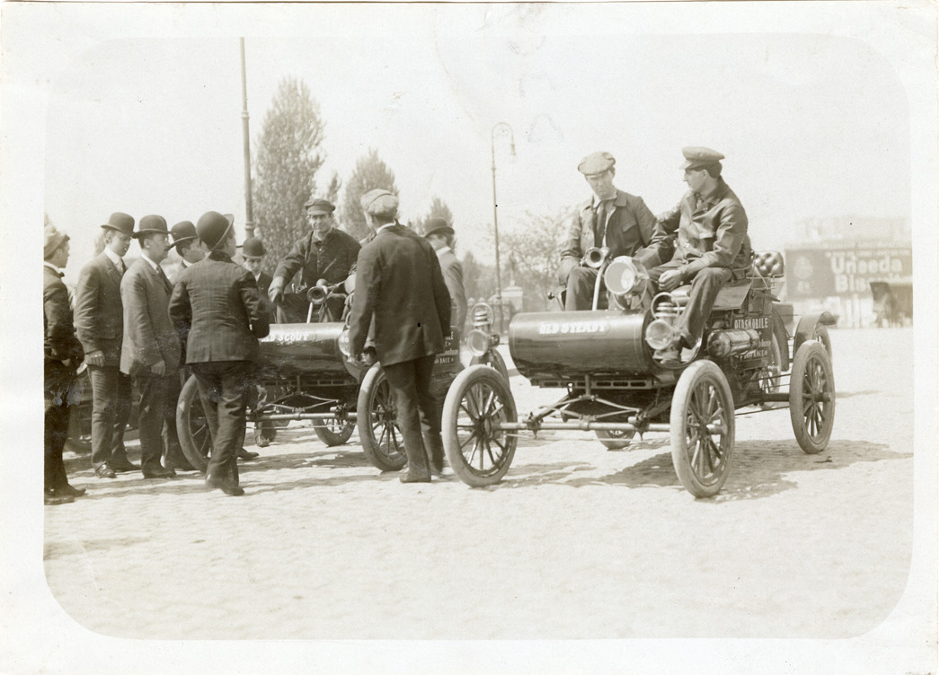 Favorite this☆ Motorists in 1905 Oldsmobile automobiles Description: View of motorists in two 1905 Oldsmobile cars. "Old Scout" is painted on car on left; "Old Steady" is painted on car on right. Handwritten on back: "1905 Oldsmobiles." Details Resource ID: na046453 Subject: Oldsmobile automobile Photographic prints Date Issued: Unknown year Format: 1 photographic print ; 5 x 7 in. Member of: National Automotive History Collection Filing Location: Oldsmobile, 1905 Rights: Physical rights are retained by DPL. Copyright is retained in accordance with U.S. copyright laws.
