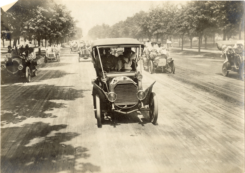 Favorite this☆ Motorists traveling in Oldsmobile automobile Description: View of motorists traveling in an Oldsmobile car, followed by other cars. Handwritten on back: "Oldsmobile, ca. '07." Details Resource ID: na046468 Subject: Oldsmobile automobile Photographic prints Date Issued: Unknown year Format: 1 photographic print ; 4.75 x 6.75 in. Member of: National Automotive History Collection Lazarnick Collection Filing Location: General photograph files, Oldsmobile, 1907 Rights: Physical rights are retained by DPL. Copyright is retained in accordance with U.S. copyright laws.
