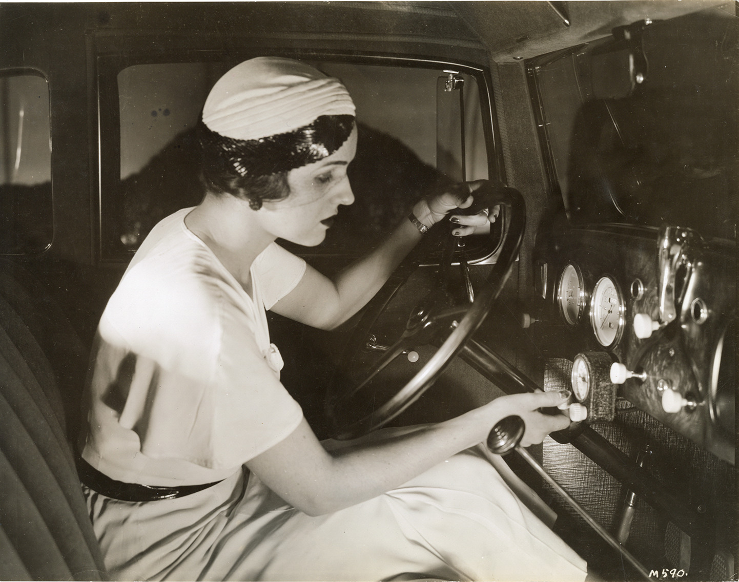 Woman motorist in 1933 Essex Terraplane automobile