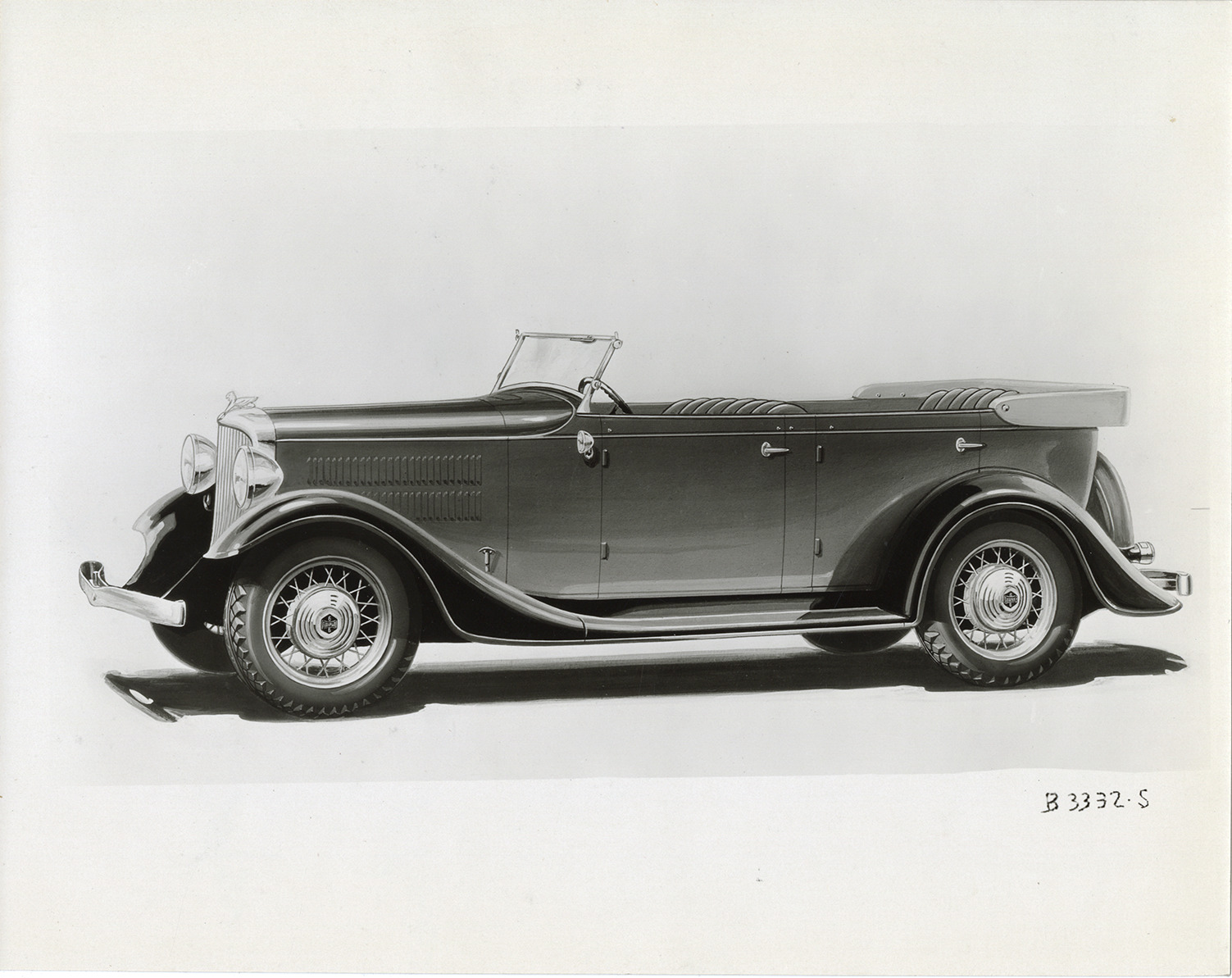 Favorite this☆ 1933 Essex Terraplane automobile Description: Artist's depiction of a 1933 Essex Terraplane 6 Series K phaeton. Handwritten on back: "Dec. 20/32. K. Terraplane 6 phaeton 5 pass. Copy of colored drawing." Details Resource ID: na046547 Subject: Automobiles Hudson Motor Car Company Photographic prints Date Issued: 1932-12-20 Format: 1 photographic print mounted on fabric ; 8 x 10 in. Member of: National Automotive History Collection Filing Location: Hudson, 1933 #4 Rights: Physical rights are retained by DPL. Copyright is retained in accordance with U.S. copyright laws.