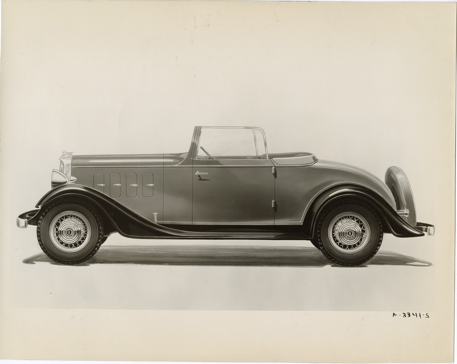 Favorite this☆ 1933 Essex Terraplane automobile Description: Artist's depiction of a 1933 Essex Terraplane 8 Series KT convertible coupe. Handwritten on back: "Nov. 26/32. Essex Terraplane 8 conv. coupe. KT." Details Resource ID: na046566 Subject: Automobiles, Convertible Hudson Motor Car Company Photographic prints Date Issued: 1932-11-26 Format: 1 photographic print mounted on fabric ; 8 x 10 in. Member of: National Automotive History Collection Filing Location: Hudson, 1933 #5 Rights: Physical rights are retained by DPL. Copyright is retained in accordance with U.S. copyright laws.