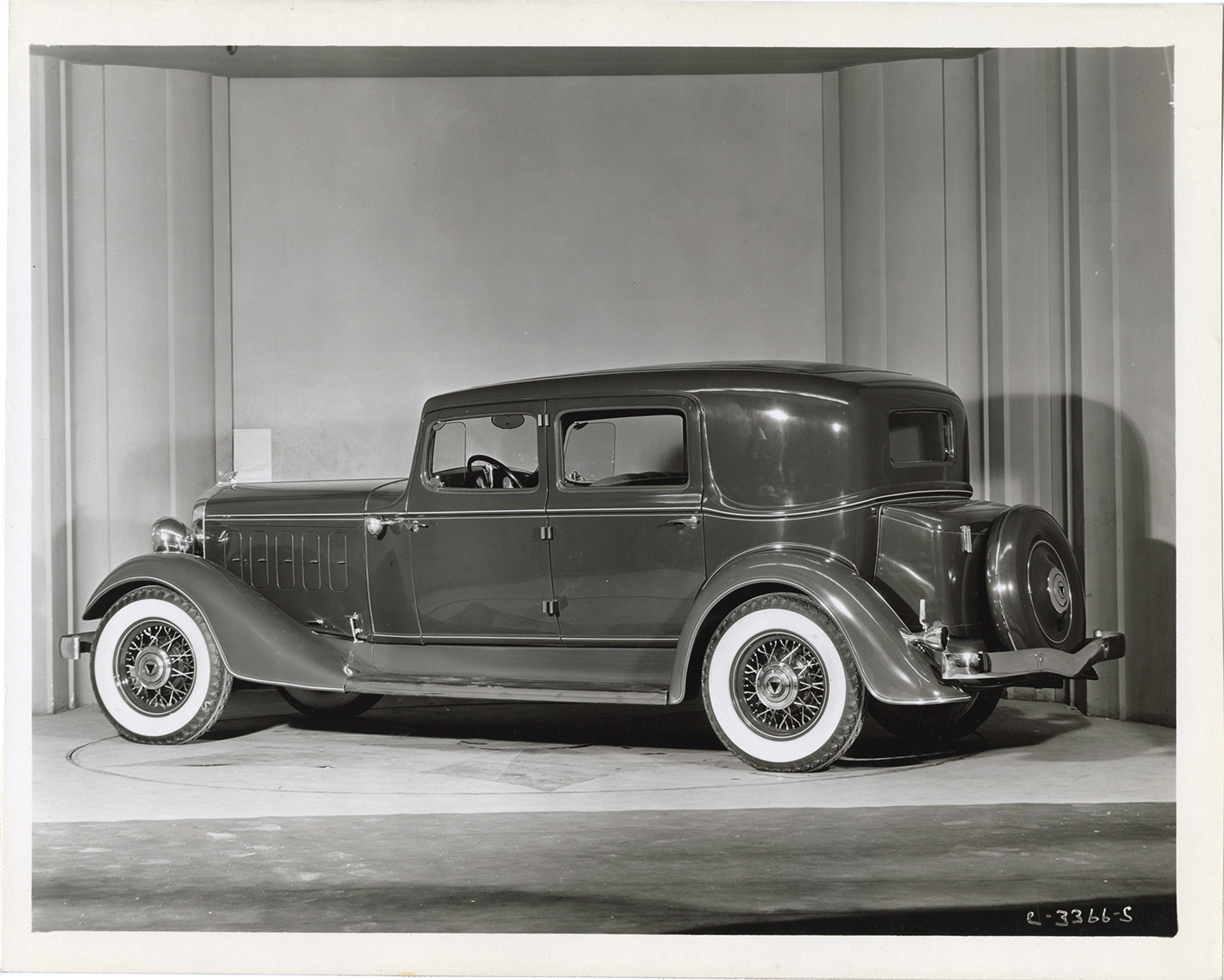 View of a 1933 Hudson 8 Series L brougham. Handwritten on back: "2-28-33. Model L, Hudson 8 Major Series brougham."