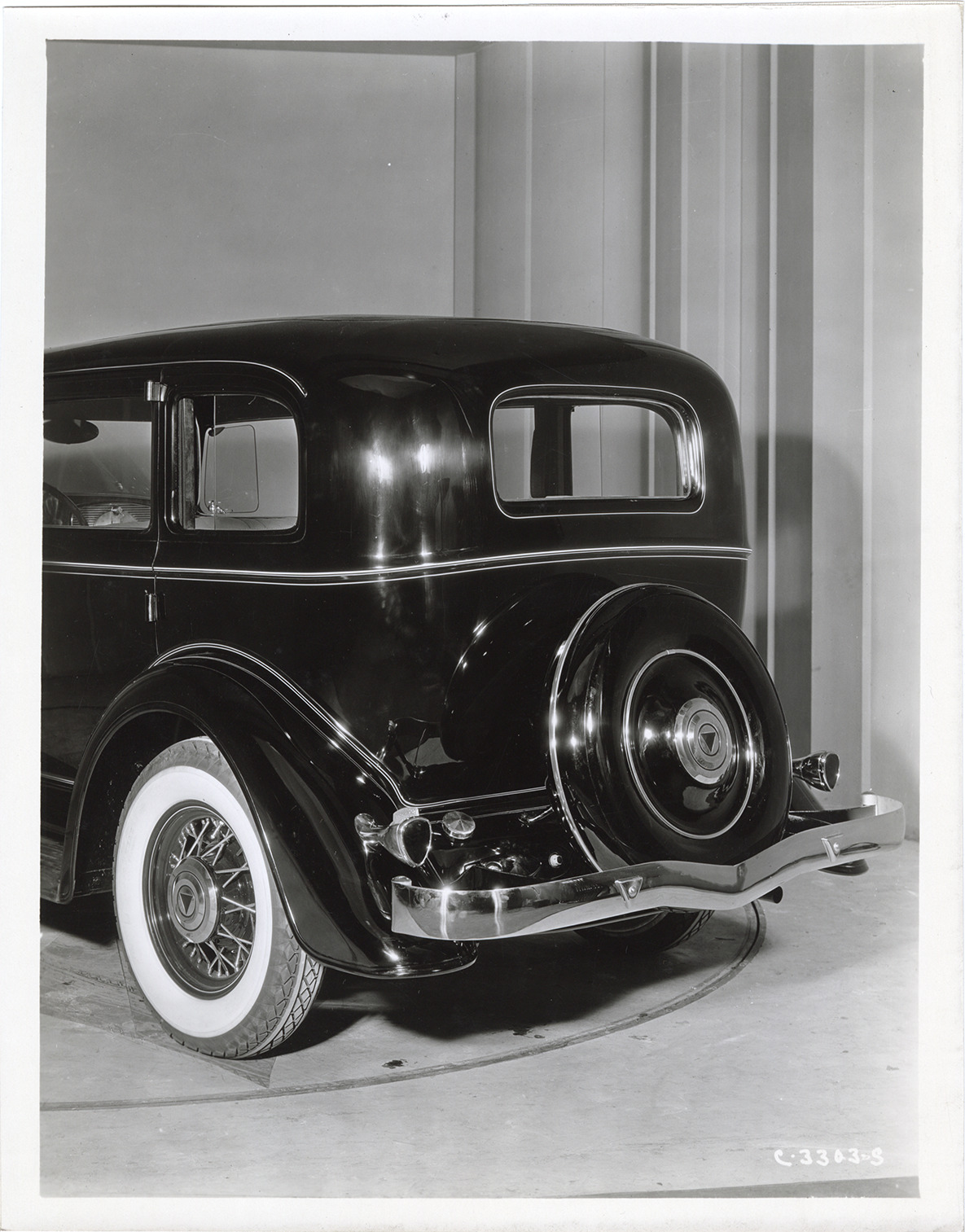 Favorite this☆ 1933 Essex Terraplane automobile Description: Rear view of a 1933 Essex Terraplane 8 Series L touring sedan. Handwritten on back: "Feb. 27, 1933. Model L, Hudson Major Series 8 touring sedan." Details Resource ID: na046651 Subject: Automobiles Hudson Motor Car Company Photographic prints Date Issued: 1933-02-27 Format: 1 photographic print mounted on fabric ; 10 x 8 in. Member of: National Automotive History Collection Filing Location: Hudson, 1933 #10 Rights: Physical rights are retained by DPL. Copyright is retained in accordance with U.S. copyright laws.