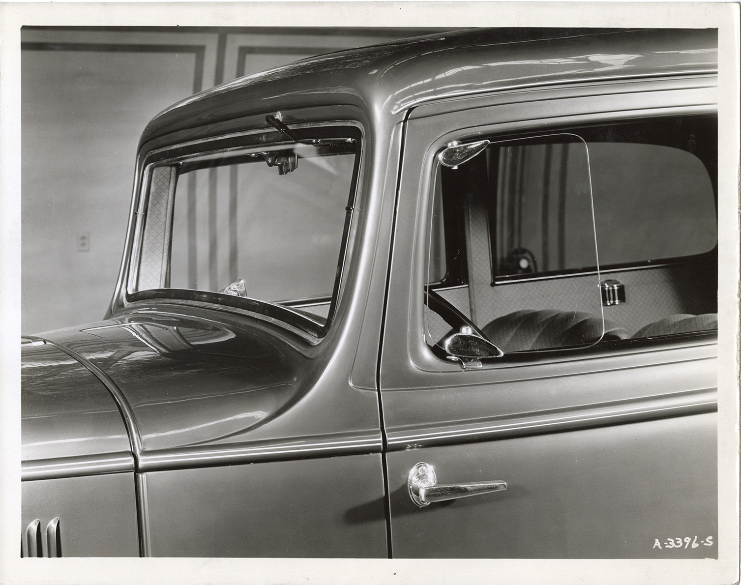 Favorite this☆ Windshield and driver's side window, 1933 Hudson automobile Description: Close-up view of the windshield and driver's side window of a 1933 Hudson car. Handwritten on back: "Dec. 15/32. Front window ventilator." Details Resource ID: na046724 Subject: Automobiles--Windows and windshields Hudson automobile Photographic prints Date Issued: 1932-12-15 Format: 1 photographic print mounted on fabric ; 8 x 10 in. Member of: National Automotive History Collection Filing Location: Hudson, 1933 #13 Rights: Physical rights are retained by DPL. Copyright is retained in accordance with U.S. copyright laws.