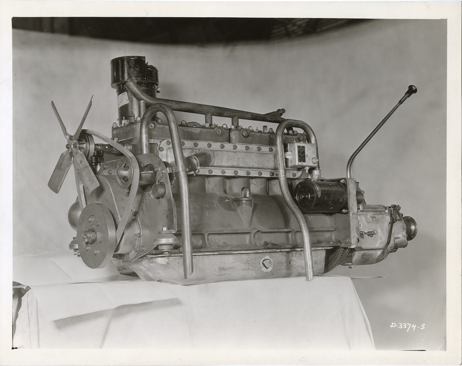 Favorite this☆ Engine, 1933 Hudson automobile Description: Close-up view of the engine for 1933 Hudson 8 Series T and L cars. Handwritten on back: "March 30/33. T & L. Left front view of Hudson 8 motor showing 3 rubber mountings." Details Resource ID: na046754 Subject: Automobiles--Motors Hudson automobile Photographic prints Date Issued: 1933-03-30 Format: 1 photographic print mounted on fabric ; 8 x 10 in. Member of: National Automotive History Collection Filing Location: Hudson, 1933 #15 Rights: Physical rights are retained by DPL. Copyright is retained in accordance with U.S. copyright laws.